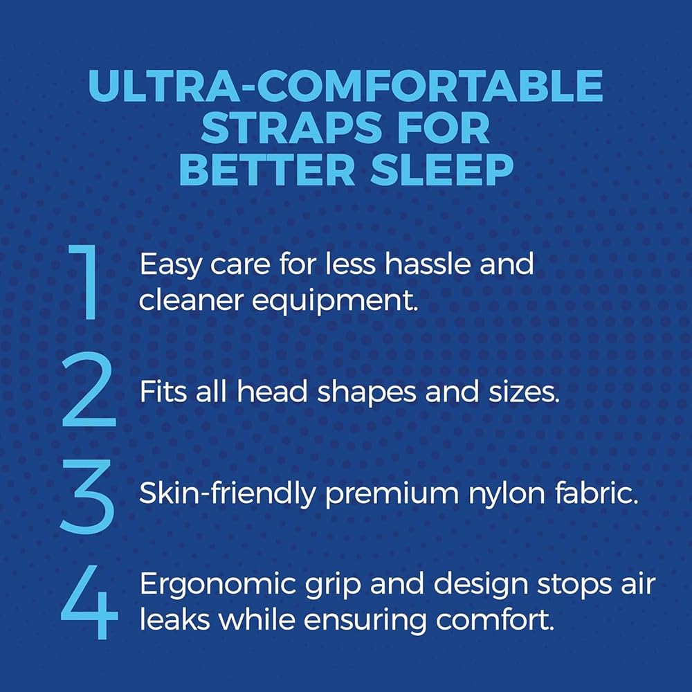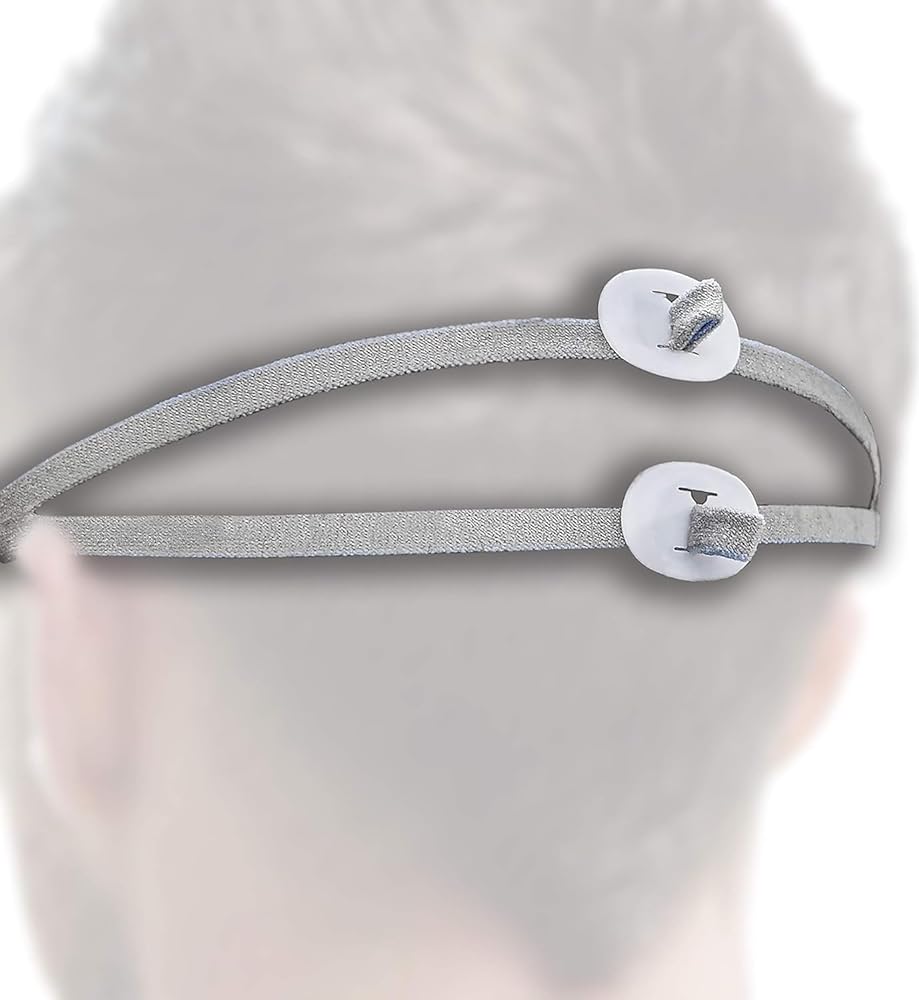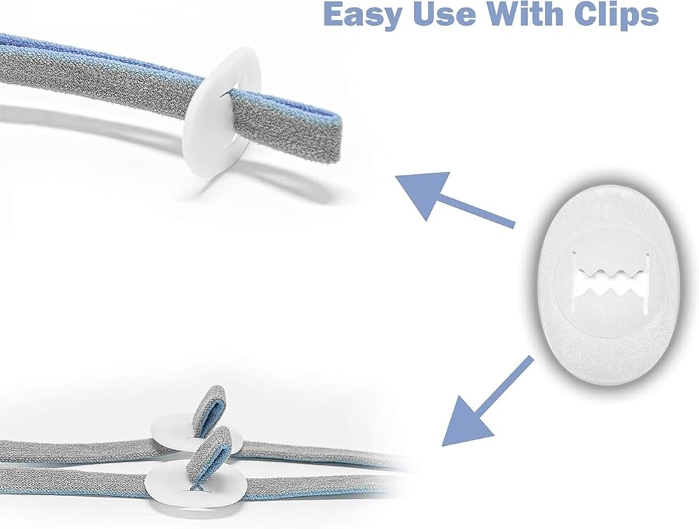 مشابك بلاستيكية متينة - مشابك القناع قابلة للتعديل لضمان قبضة محكمة للغاية على رأسك لمنع السقوط والانزلاق. قم بمضاعفة حزام غطاء الرأس لجهاز CPAP فوق المشابك وادفعه عبر الفتحة حتى يتم العثور على الطول المطلوب - قم بسحب الأشرطة في الاتجاه الآخر لتثبيتها في مكانها.