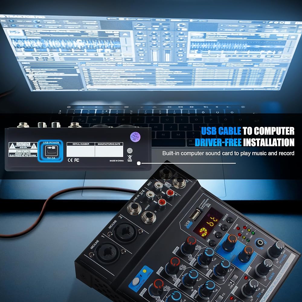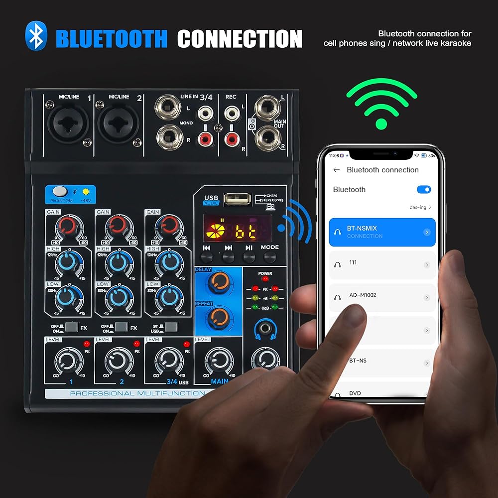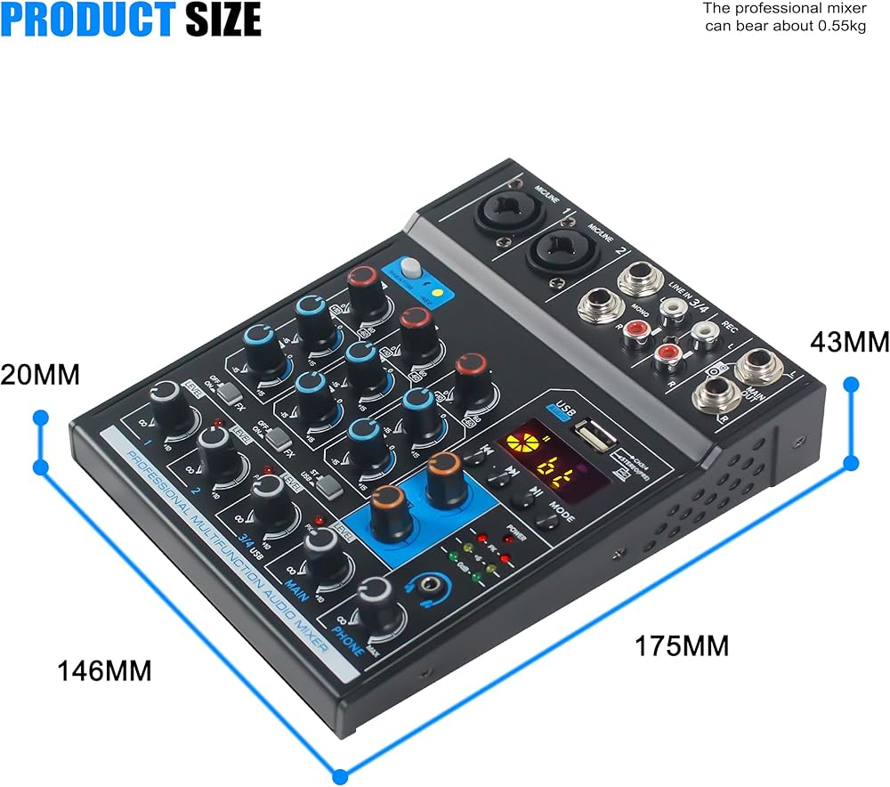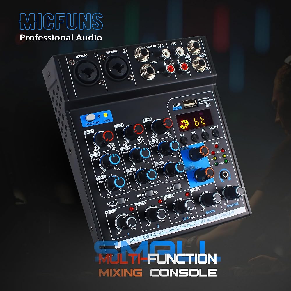 Micfuns MK2 2 XLR 2 قناة ستيريو خلاطات تسجيل غير مدعومة مع mp3 بلوتوث لتسجيل الموسيقى الحية للكمبيوتر