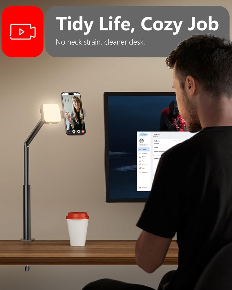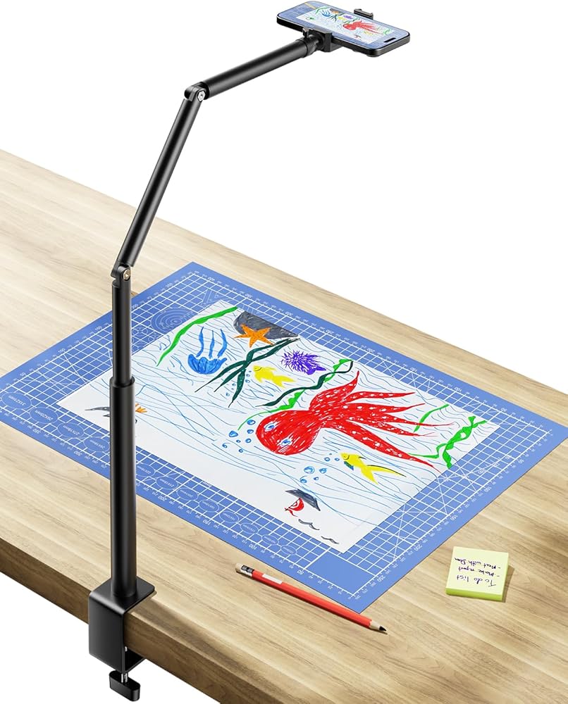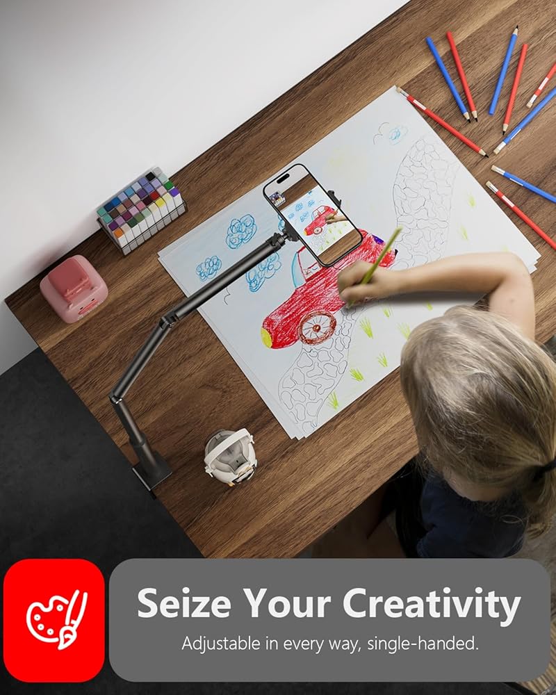 【تشغيل بيد واحدة، ثابت وآمن】حامل علوي احترافي لسطح المكتب يمكنك تعديله بسهولة حسب الزاوية المرغوبة بيد واحدة فقط، مما يضمن تحديد موضع محدد. وهو يدعم ما يصل إلى 1 كجم دون القلق بشأن انزلاق هاتفك أو ملحقاته. لا يسقط أبدا.