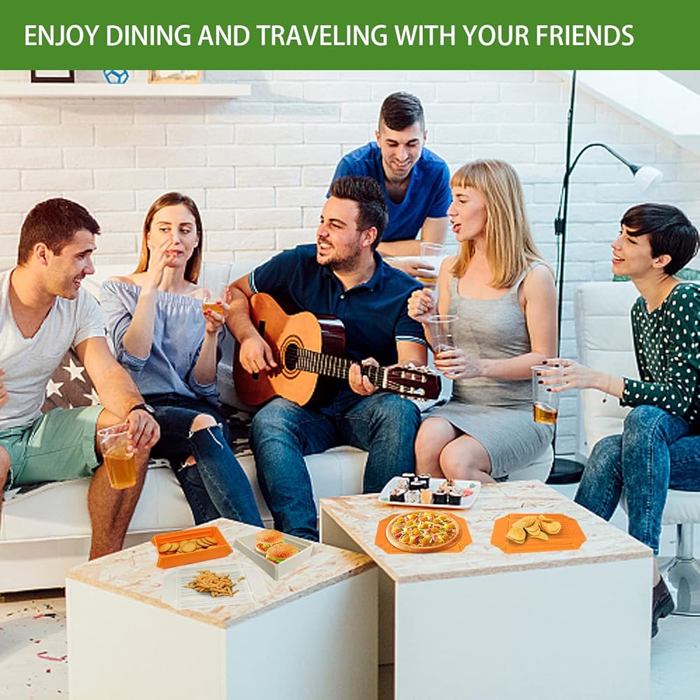 [Folding Camping Plate] The collapsible bowls with lids designed with 4 magnetic structure corners,easy to adsorb it's corners together,then fold the camp plats into a multipurpose food storage container.It's transparent lid will keeps the bowls more stable.