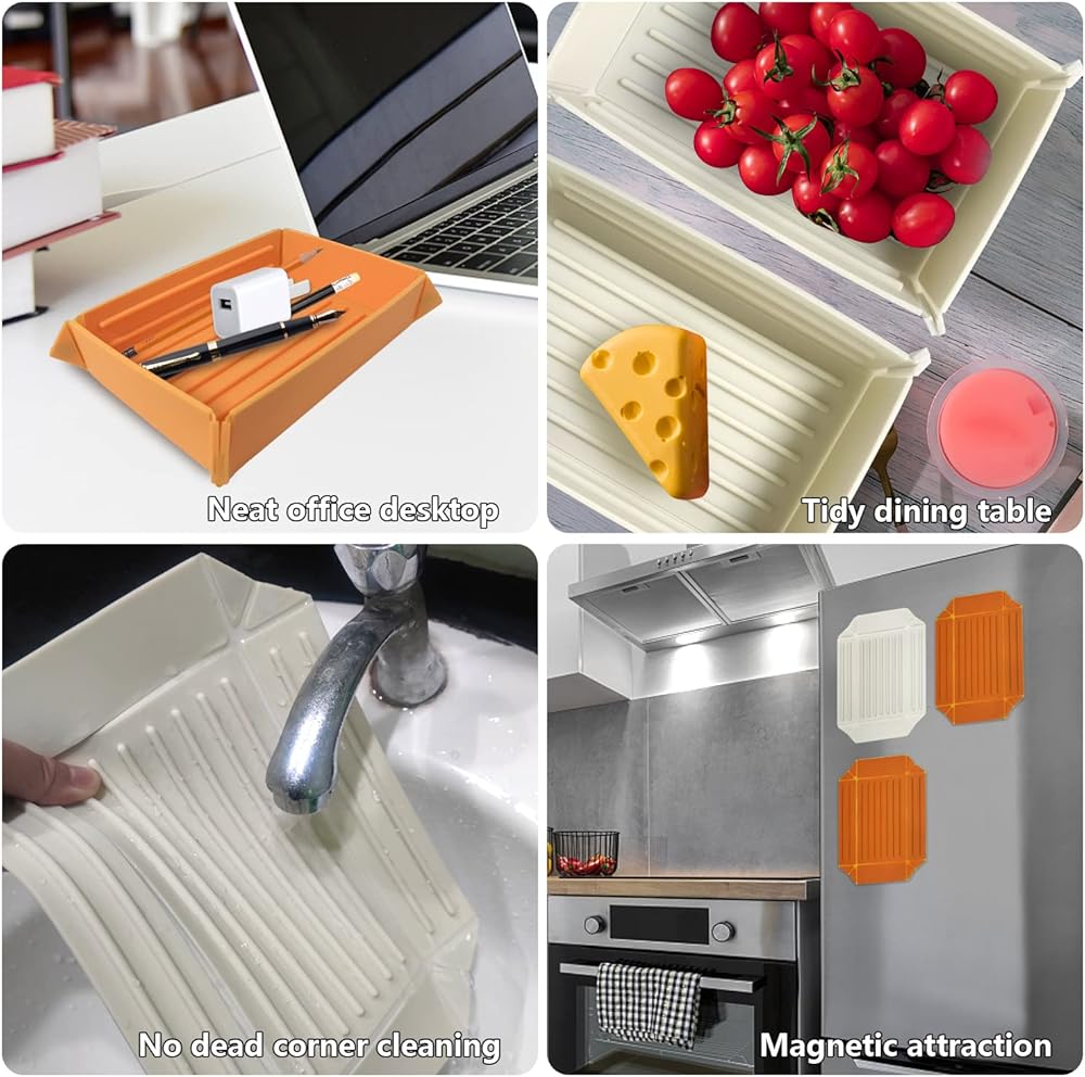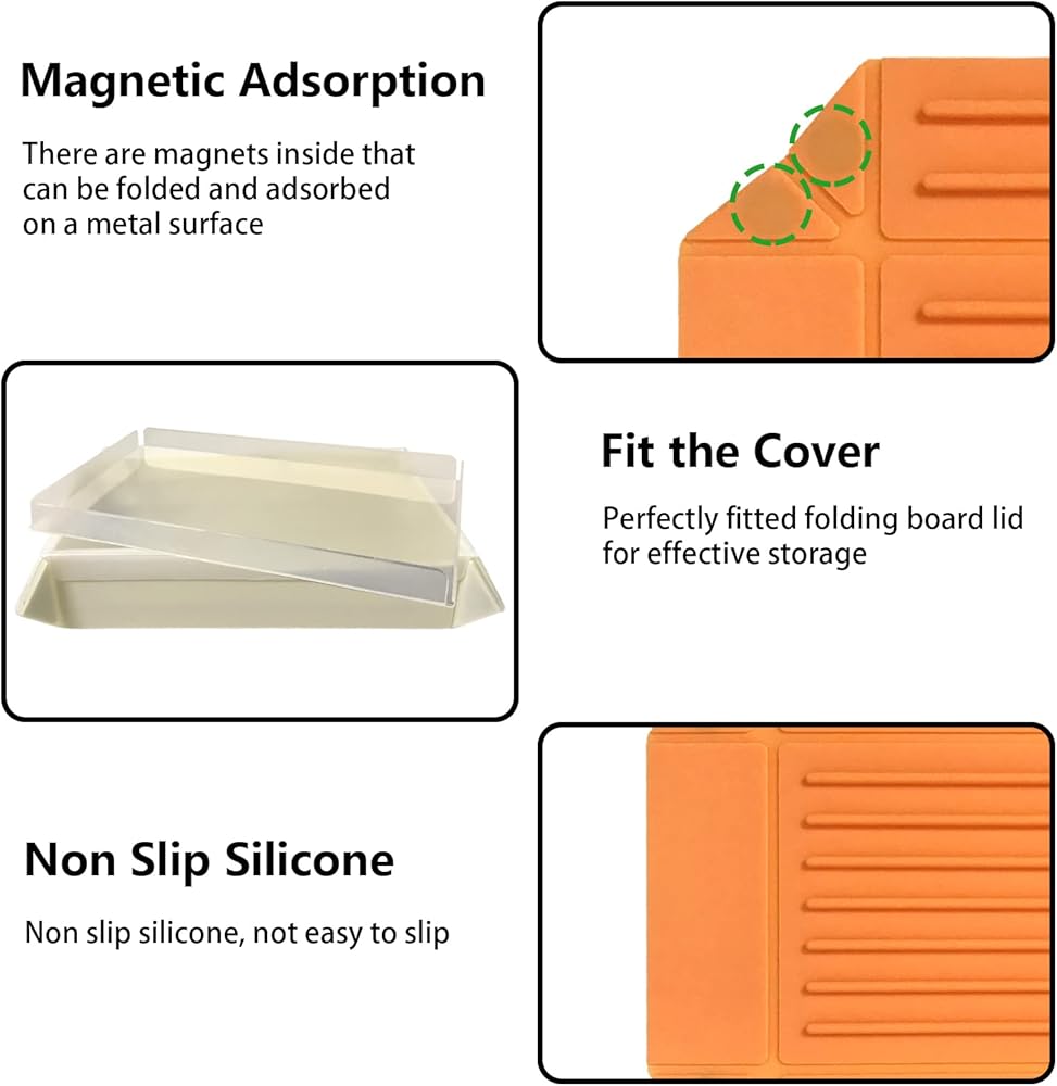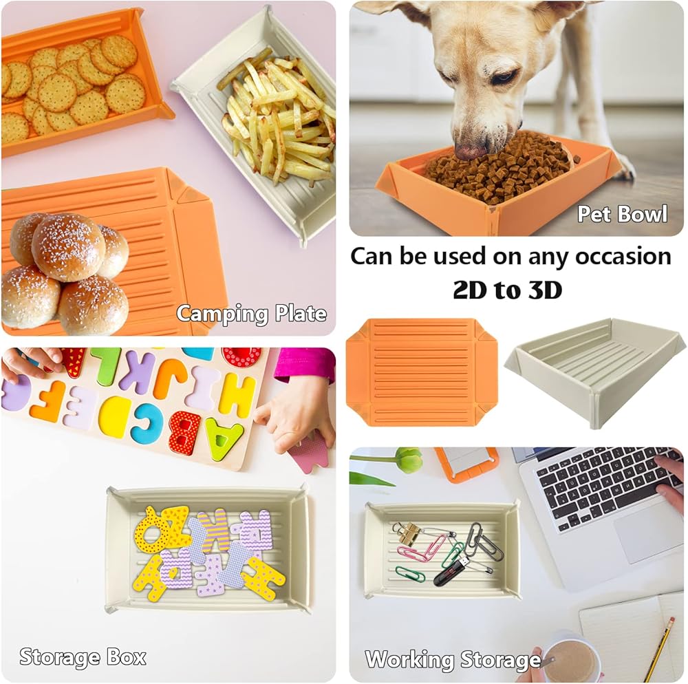 [Wide Use] Unique Foldable Silicone Bowl with lid and magnetic adsorption structure,it can be used as food storage containers, pet bowl,draining mats,cutting boards,camping bowls,mixing bowl,heat insulating mats, etc,.Perfect for family meals and outdoor trips.