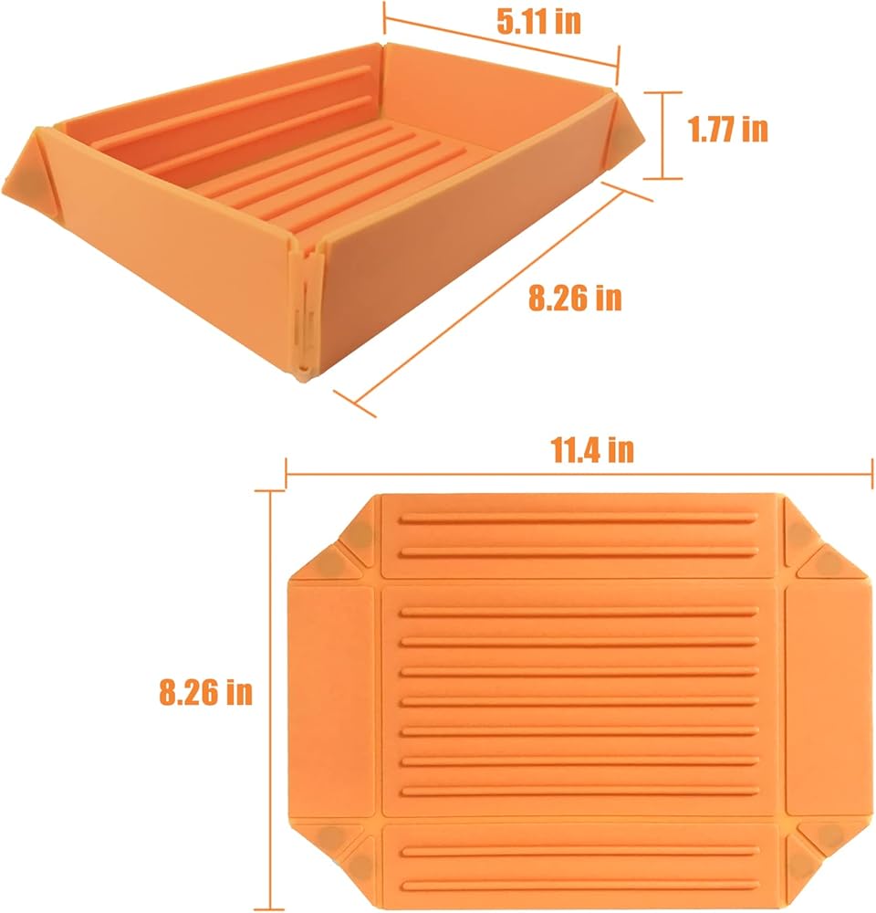 [Reusable&Easy to Clean] This collapsible bowl for camping comes with oil resistant surface,easy to clean,reusable and convenient to storage.The size of camping plates before folding is 11.4*8.2In. When folding it into food storage box, it's 8.2*5.1In*1.7In.