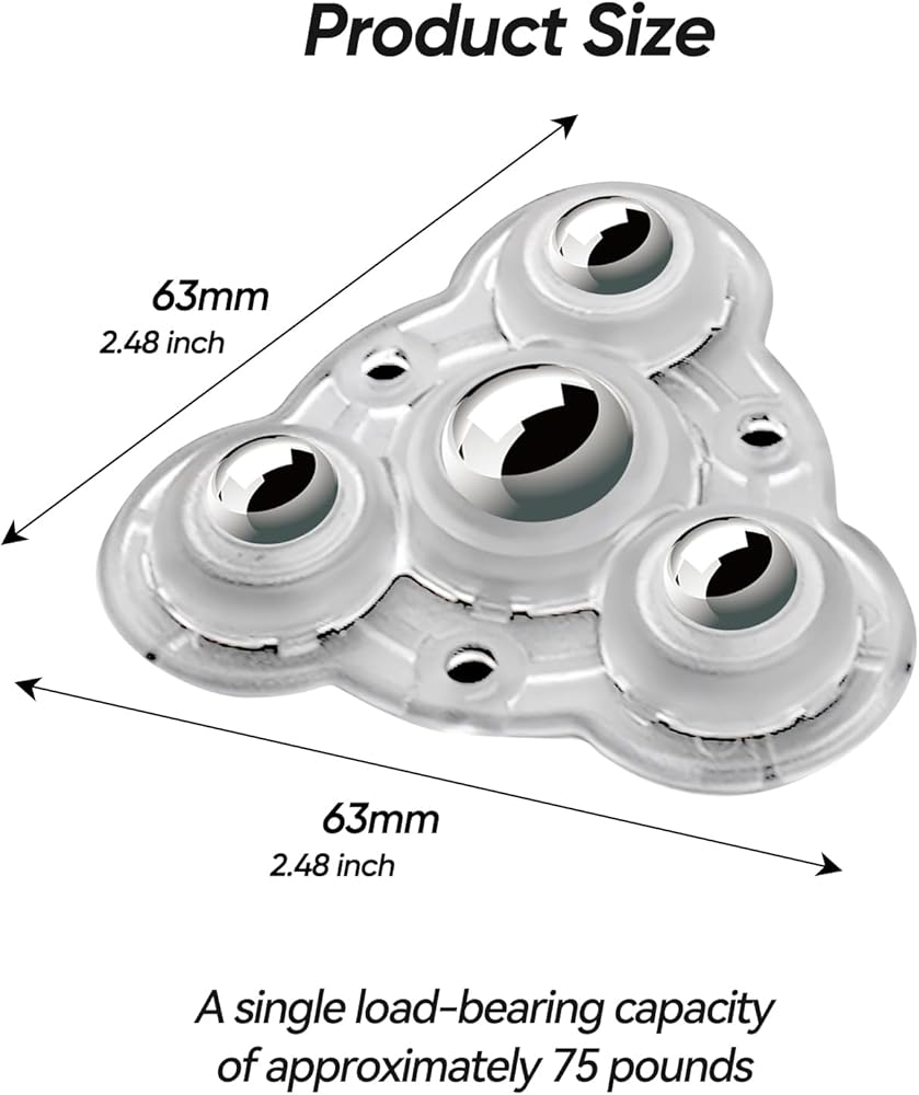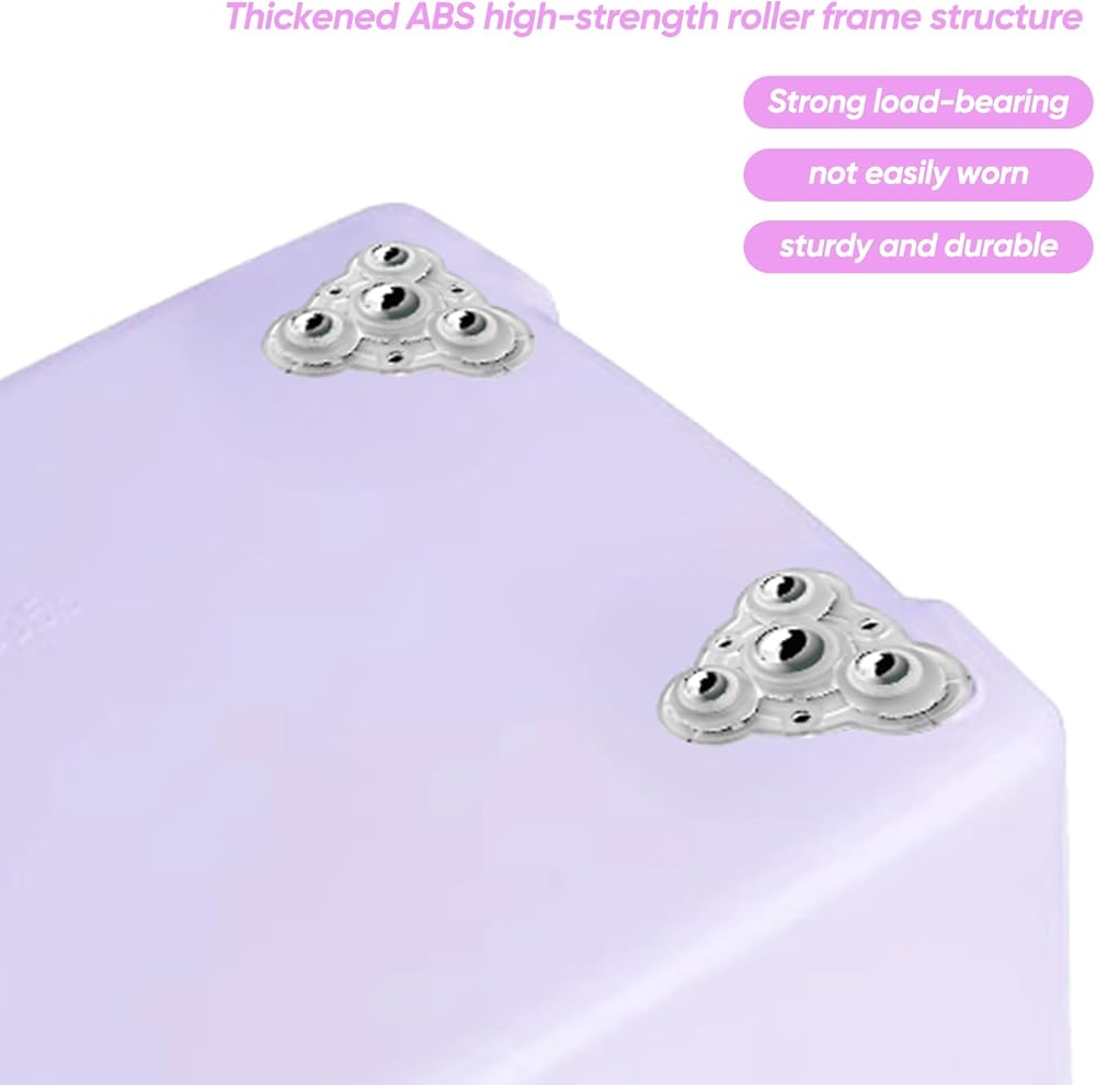 مواد عالية الجودة: العجلات اللاصقة لصندوق التخزين مصنوعة من مادة أكريلونتريل بوتادين ستايرين المتينة وكرات فولاذية صغيرة، مما يضمن القوة وطول العمر. تتميز هذه العجلات بالمتانة، ومقاومة التآكل، وقادرة على تحريك الأشياء الثقيلة بسهولة ودون إجهاد. يرجى ملاحظة أن الانزلاق على الأسطح الخشبية قد يترك علامات.