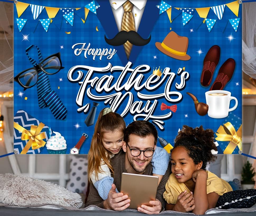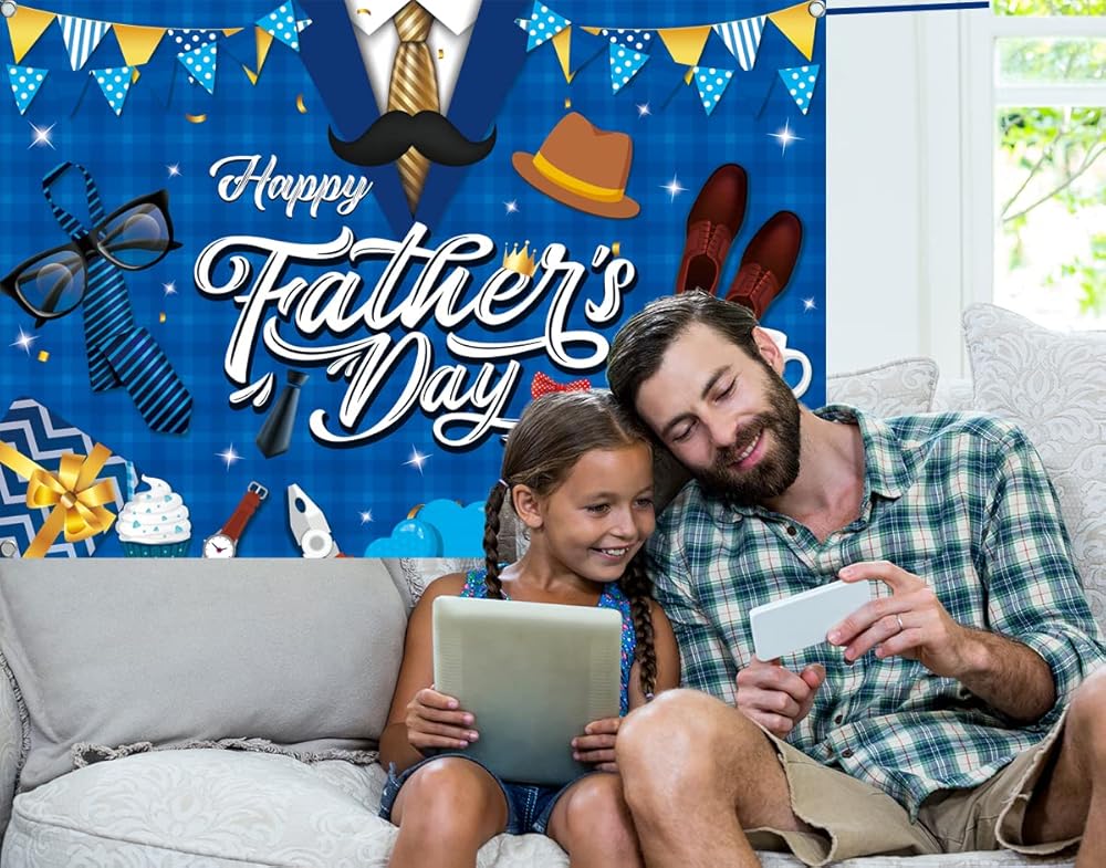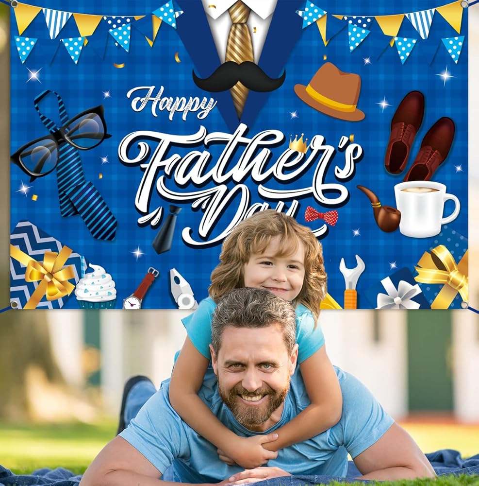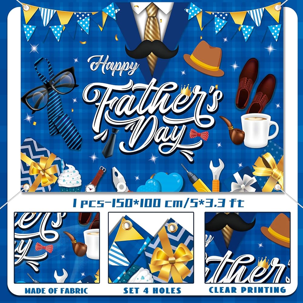👔【جودة عالية】ديكورات عيد الأب الأزرق الكبير السعيد مصنوعة من مواد الفينيل عالية الجودة، وخفيفة الوزن، وسهلة الحمل. خلفية عيد الأب قابلة لإعادة الاستخدام، بدون رائحة كريهة، ويمكن طيها بسهولة، وسوف تخدمك لفترة طويلة، وتلبي تمامًا احتياجات ديكورات حفلات عيد الأب.