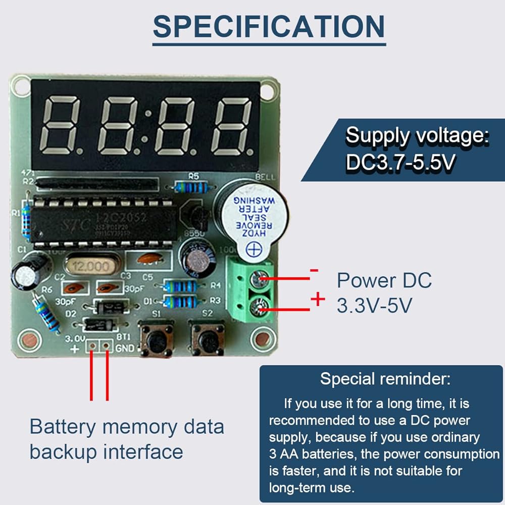 • 🕰️[Function] With clock, time setting, alarm setting, countdown, stopwatch, counter, hourly timekeeping, precise time display, 24-hour system and other functions.At the same time it can help you learn more about electronics expertise.