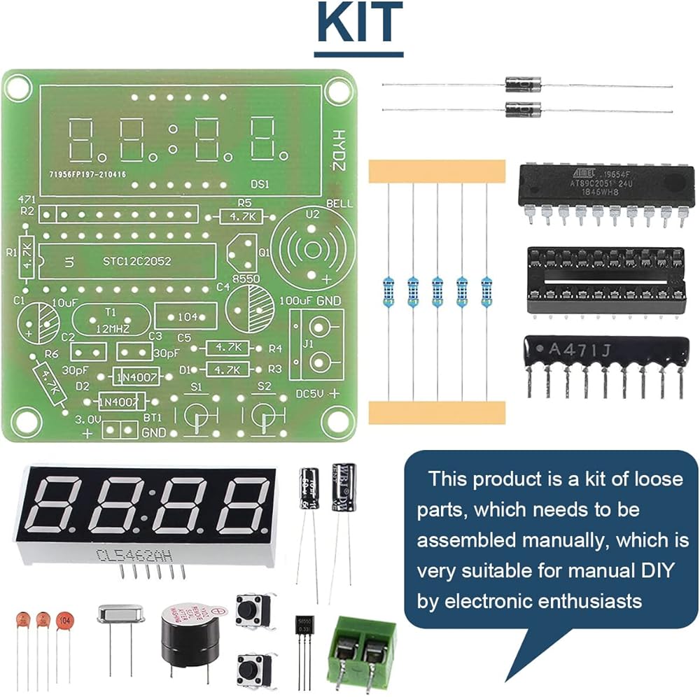 • 🕰️[Product]4 Bits Digital Electronic Clock DIY Kits, Supply voltage: 3V-6V, High quality PCB board,the connection that was clearly mapped and labeled on the board makes it easy to assemble.