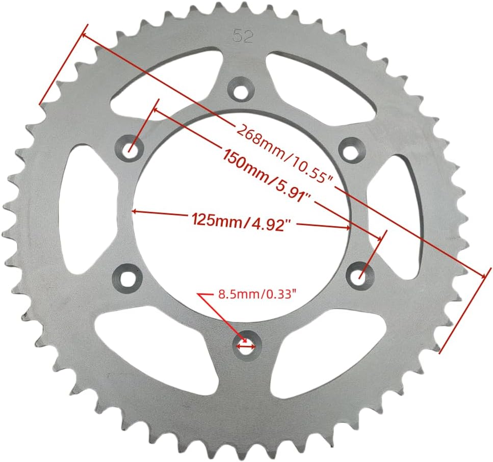 ZTDZZH 52 Tooth Rear Chain Sprocket ID 125mm for 520 Chain 50CC 70CC 90CC 110CC 125CC 250CC Pit Dirt Bike ATV Quad Bike Motorcycle
