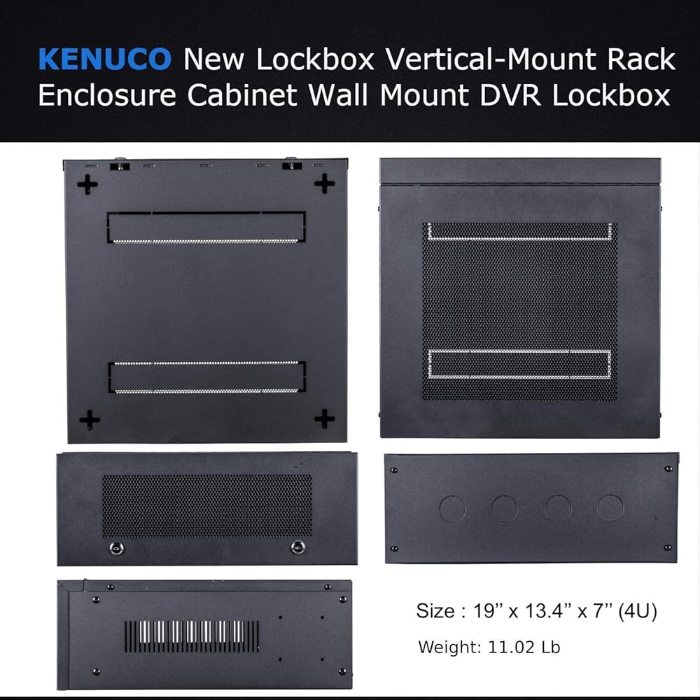 صندوق أمان DVR عالي التحمل مقاس 16 بوصة من Kenuco (شبكة سوداء مقاس 19 بوصة × 13.4 بوصة × 7 بوصة)