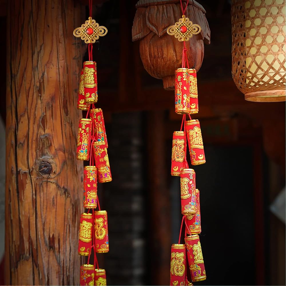 🧨Package contains: you will receive 2 pack of chinese firecrackers hanging ornament, classic styles to meet your holiday decoration needs, which will make your house warmer during the lunar new year.