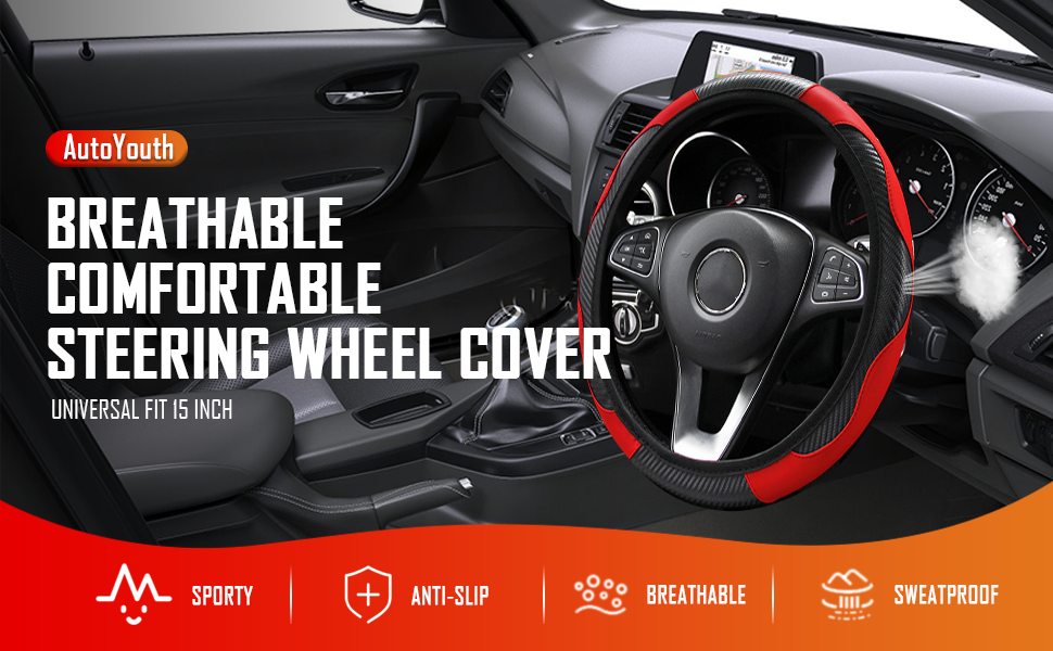 مسامي وممتص للعرق: فتحات غير قابلة للانزلاق على سطح واقي عجلة السيارة تسمح لك بالإمساك بعجلة القيادة بشكل أفضل وتوفر لمسة مريحة أثناء القيادة. جلد البولي يوريثان المصنوع من الألياف الدقيقة المسامية يحافظ على راحة يدك بعيدًا عن العرق اليدوي، كما يمنحك ملمسًا مريحًا ودافئًا في الشتاء وباردًا في الصيف. مقاوم للعرق، ومضاد للانزلاق، ومستقر.