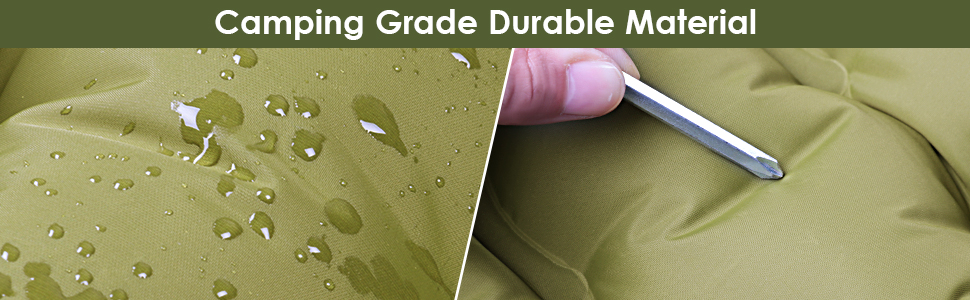 مادة متينة من درجة التخييم: مصنوعة من أقوى المواد المستخدمة في الهواء الطلق، سطح وسادة النوم المزدوج مصنوع من مادة مقاومة للتآكل ومقاومة للماء. عزل فعال ضد رطوبة الأرض وحماية السجادة من الأشياء الحادة. يضمن نظام النفخ المغلق للغاية أن تحافظ وسادة النوم على مستوى نفخ ثابت طوال الليل، مما يلغي الحاجة إلى إعادة النفخ بشكل متكرر.