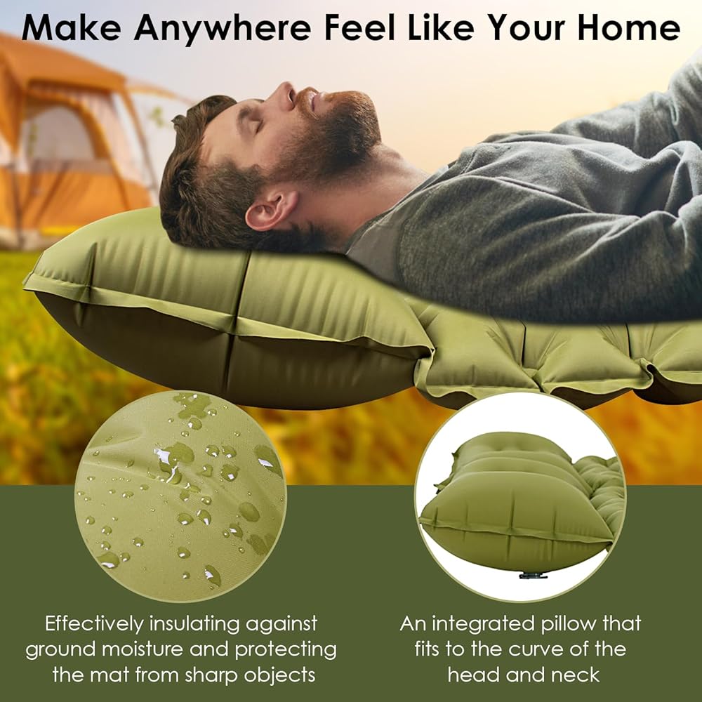 اجعل أي مكان يشعر وكأنه منزلك: وسادة التخييم المزدوجة مجهزة بوسادة مدمجة تناسب منحنيات الرأس والرقبة. مع جوانب أعلى من المنتصف، توفر سجادة التخييم دعمًا وتوازنًا أفضل، مما يلبي احتياجات كل من يفضلون الشعور بالنعومة وأولئك الذين يحتاجون إلى دعم أكثر ثباتًا. يمكنه البقاء بعيدًا عن الأرض الصلبة والنوم بشكل مريح في أي وضع نوم.