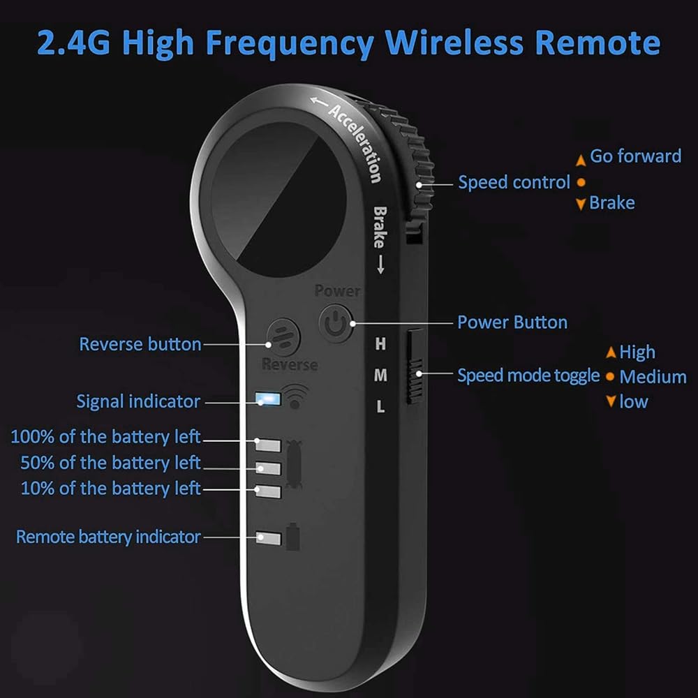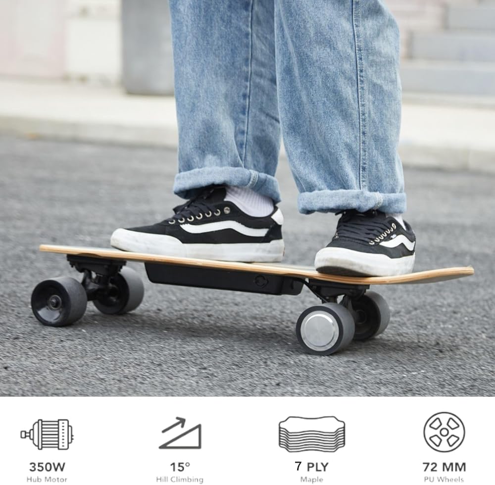 【Wireless Remote Control Electric Skateboard】: With its compact design and 3 easily adjustable speed modes, caroma H2S electric skateboards are beginner's dream boards. Experience the convenience of power-assisted riding, and leave the days of kicking and pushing behind. With a control range of up to 14m, the remote keeps you updated on the electric skateboard's battery level through LED indicators.