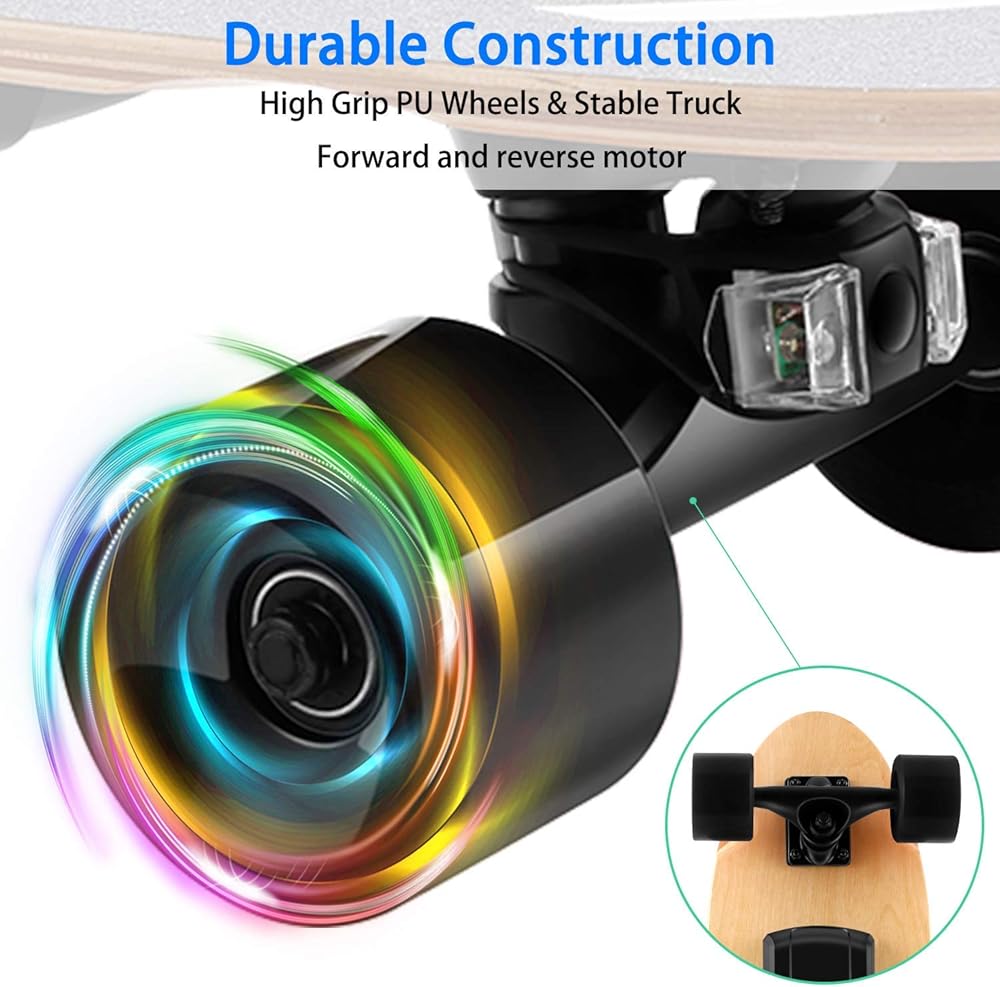 【7-Ply Maple Durable Electric Longboard】: Caroma electric skateboards for adults are crafted from robust 7-ply maple, capable of comfortably supporting up to 200 pounds. Its design ensures even weight distribution, ensuring a smooth and steady ride, even at top speed.