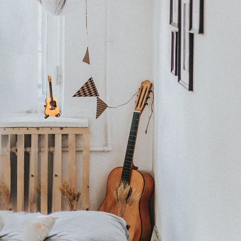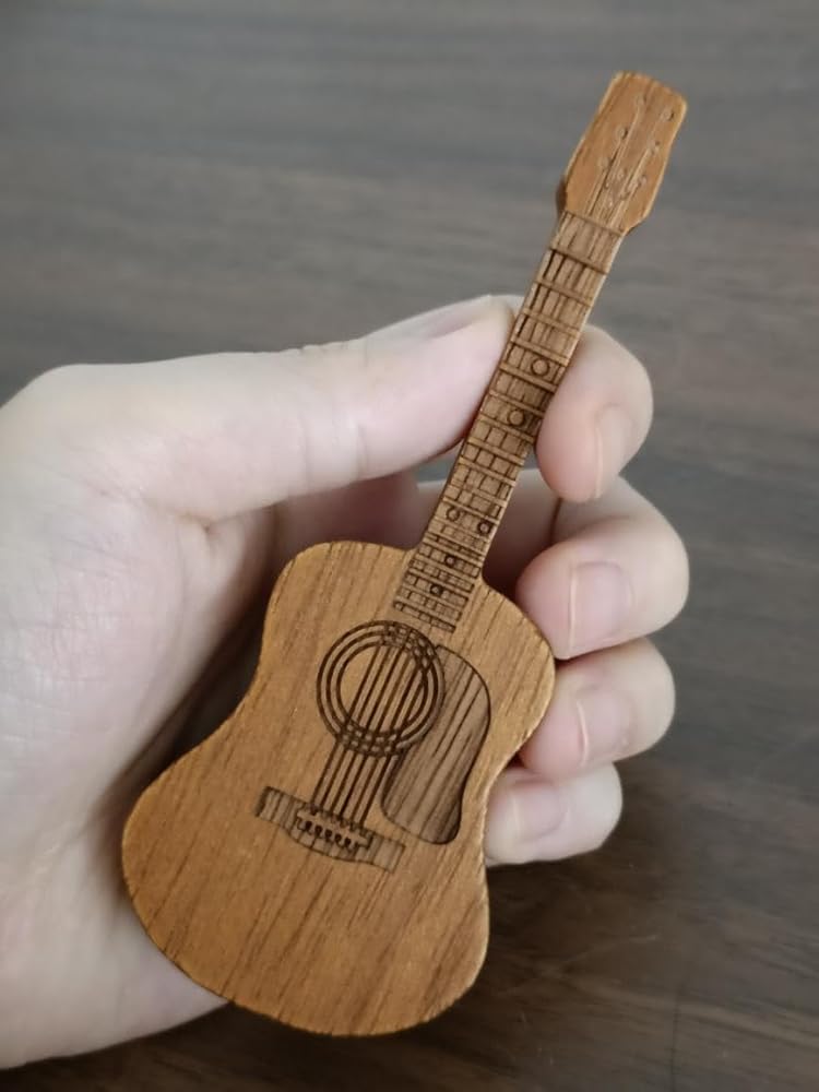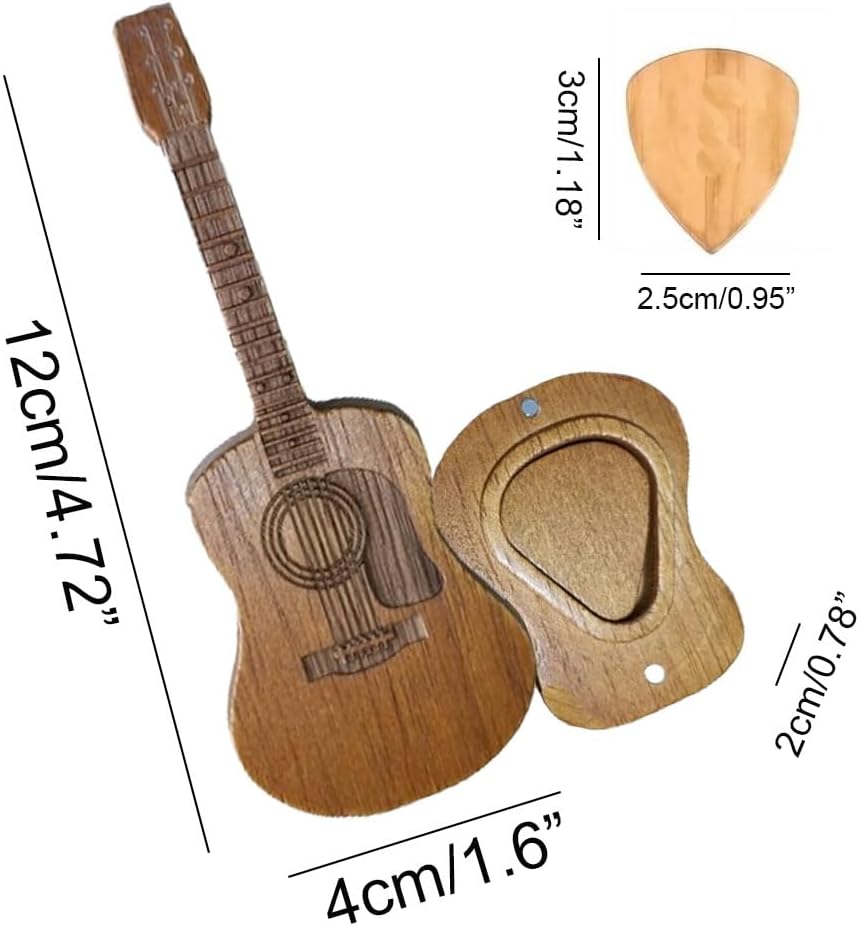 🎻Pocket-Sized for Portability: This wooden pick holder measures 4.72 x 1.77 x 0.98 inches (12 x 4.5 x 2 cm), making it perfectly pocket-sized for easy portability. Despite its mini guitar-shaped design, it can hold up to 3 wooden picks or 8 plastic picks.