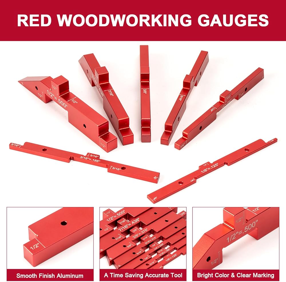 WOODWORKING BLOCKS GAUGE SET MATERIAL - Made of solid aluminum with smooth finish, light and bright color with engraved measurements.