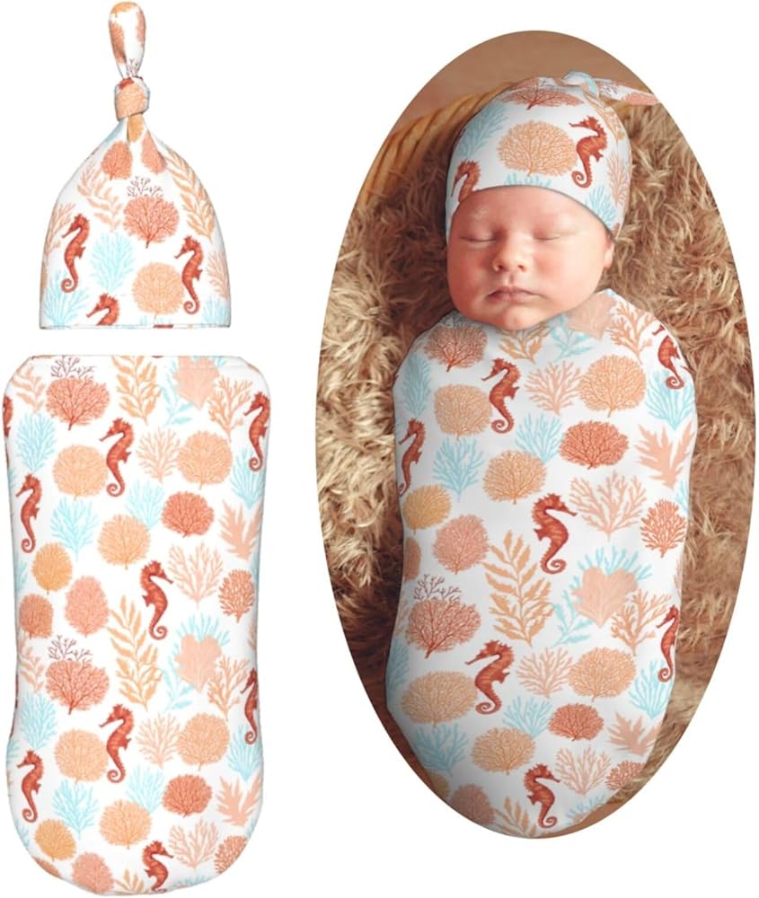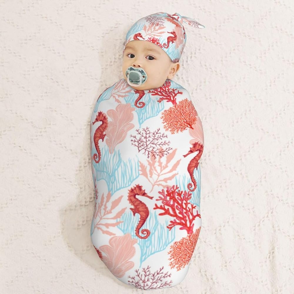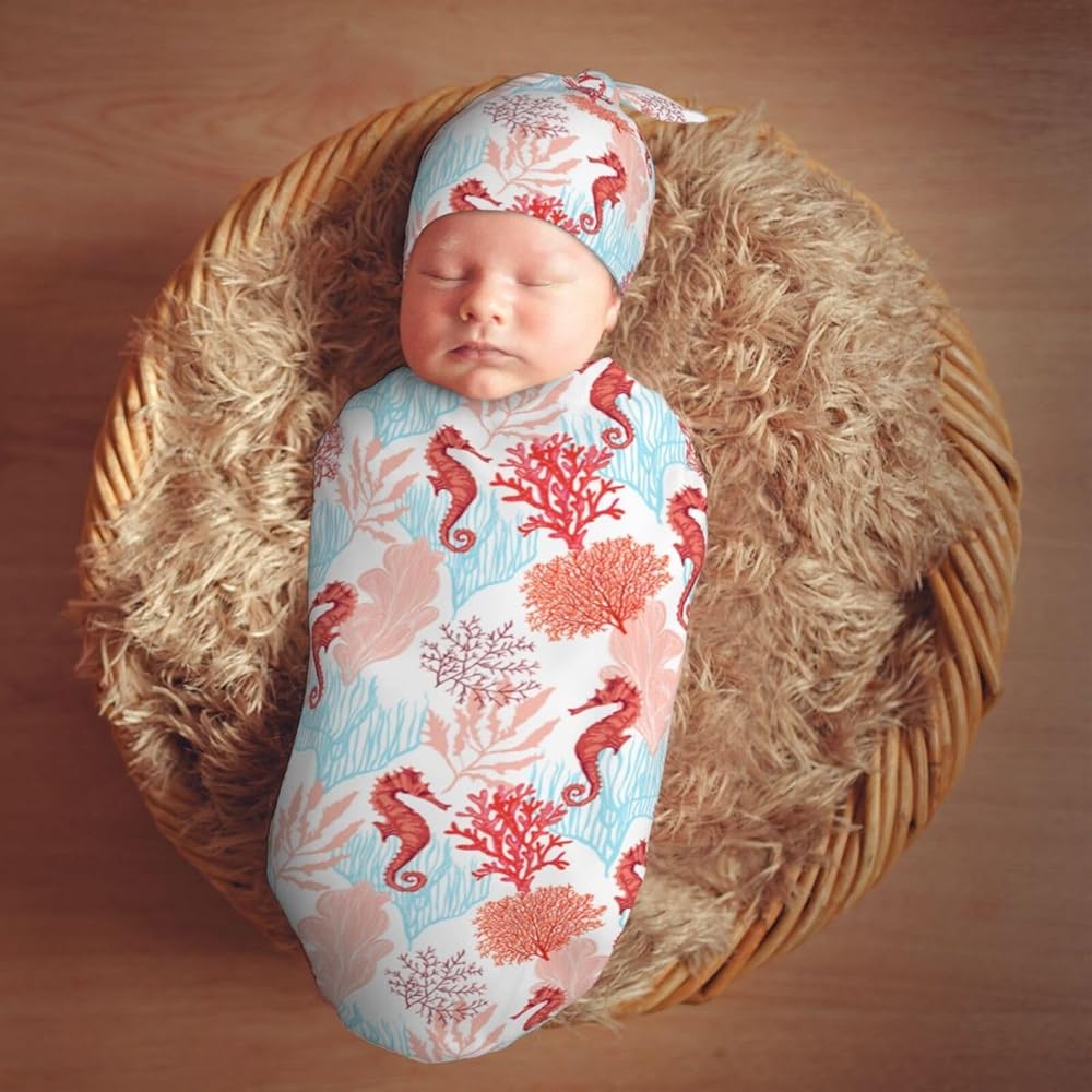 5.11.4 X 20.8 Inch , Hat: 6.5x13 Inch; Our Swaddle Wrap Is Suitable For 0-6 Month Babies.