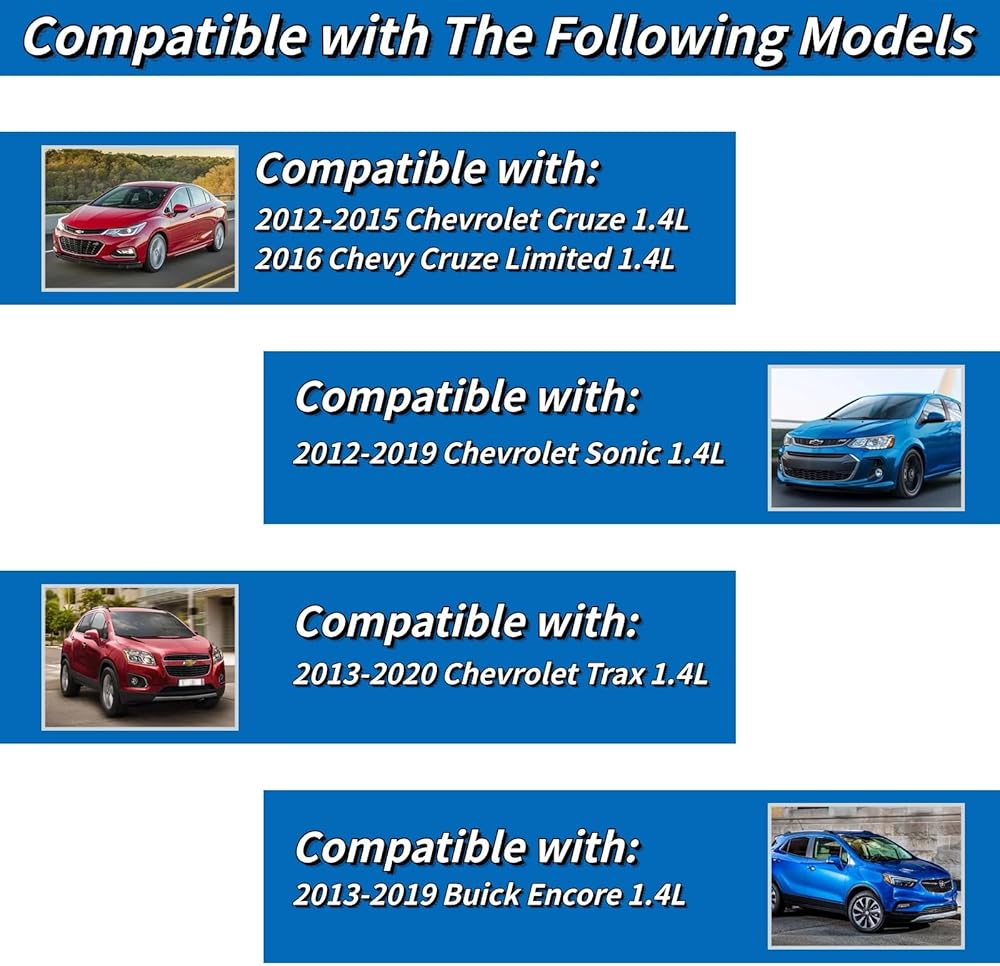 【Compatibility】Compatible with 2013-2019 Buick Encore 1.4L,2012-2015 Chevy Cruze 1.4L, 2016 Chevy Cruze Limited 1.4L, 2012-2019 Chevy Sonic 1.4L, 2013-2020 Chevy Trax 1.4L.