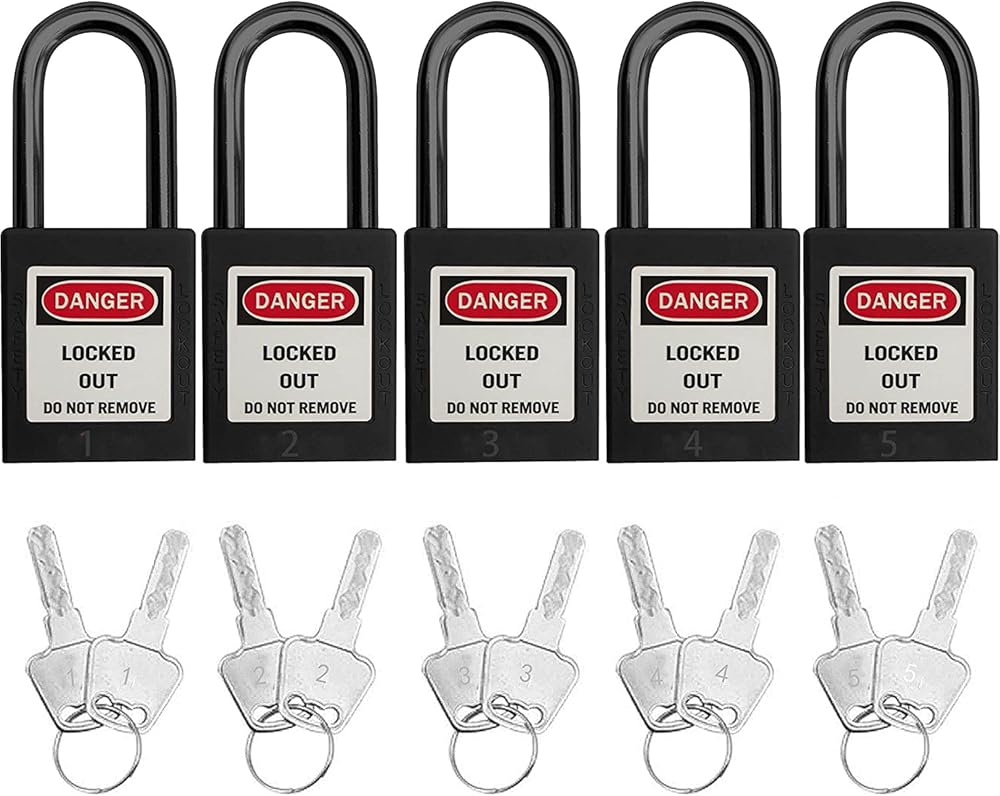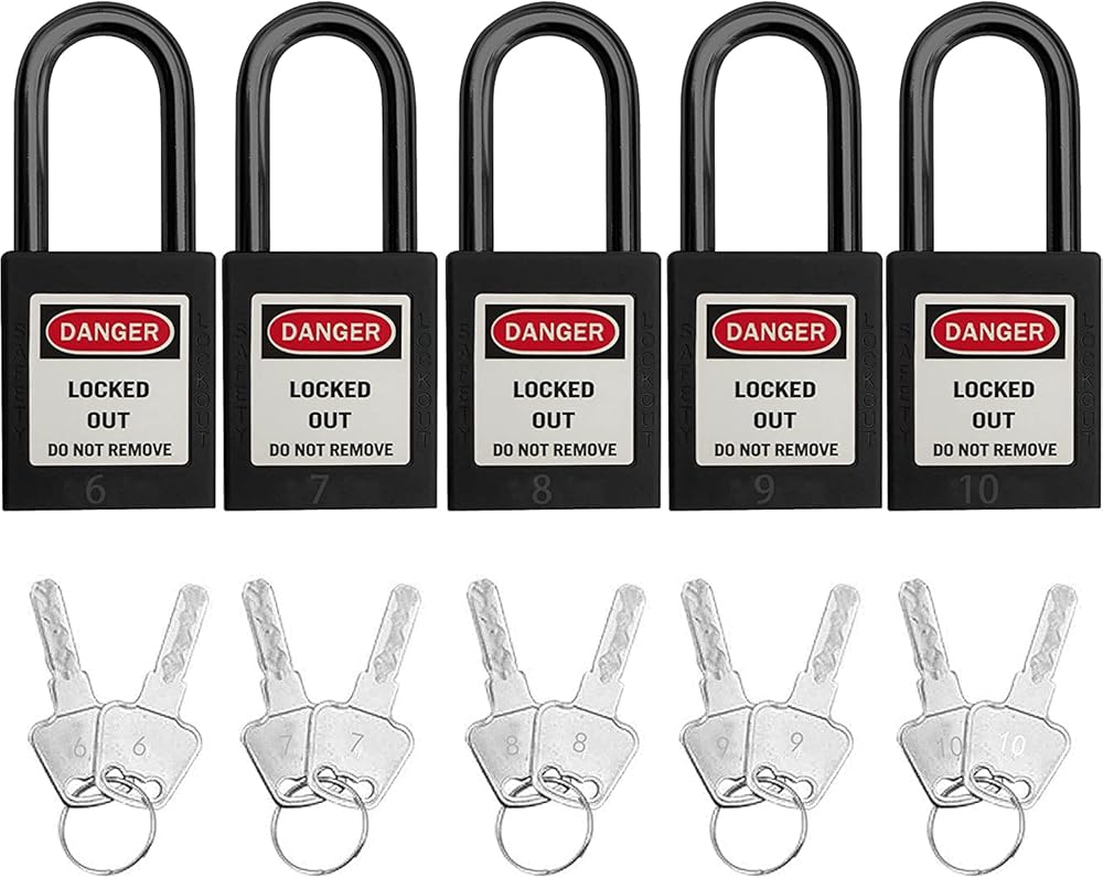 SAFBY Lockout Tagout Locks Loto Safety Padlock, Keyed Differently, OSHA Loto Safe Padlocks for Lock Out Tag Out Stations and Devices (Black Number 1-10)