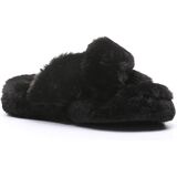 Walk in comfort and stay warm wearing the TEMPUR-PEDIC Sloann slippers. Man-made and faux fur upper, lining, and insole. Slip-on style. Round toe. Overlapping vamp. Man-made sole. The slippers contain faux fur.