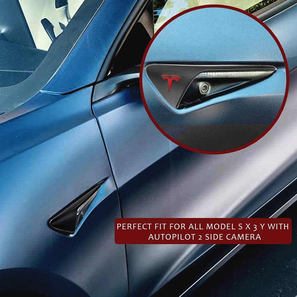 Provides High Class and Fashion Decor: This Matte Black with Red T Logo Design Camera Covers Fits All Tesla Facelift Models, With Tesla Autopilot, and Provides High Class and Fashion Decor. The two side view cameras are Covered by the Covers.