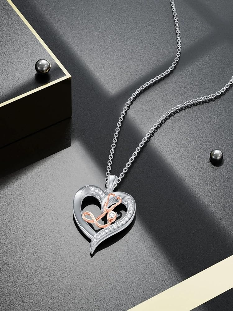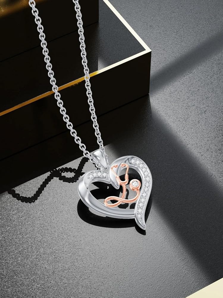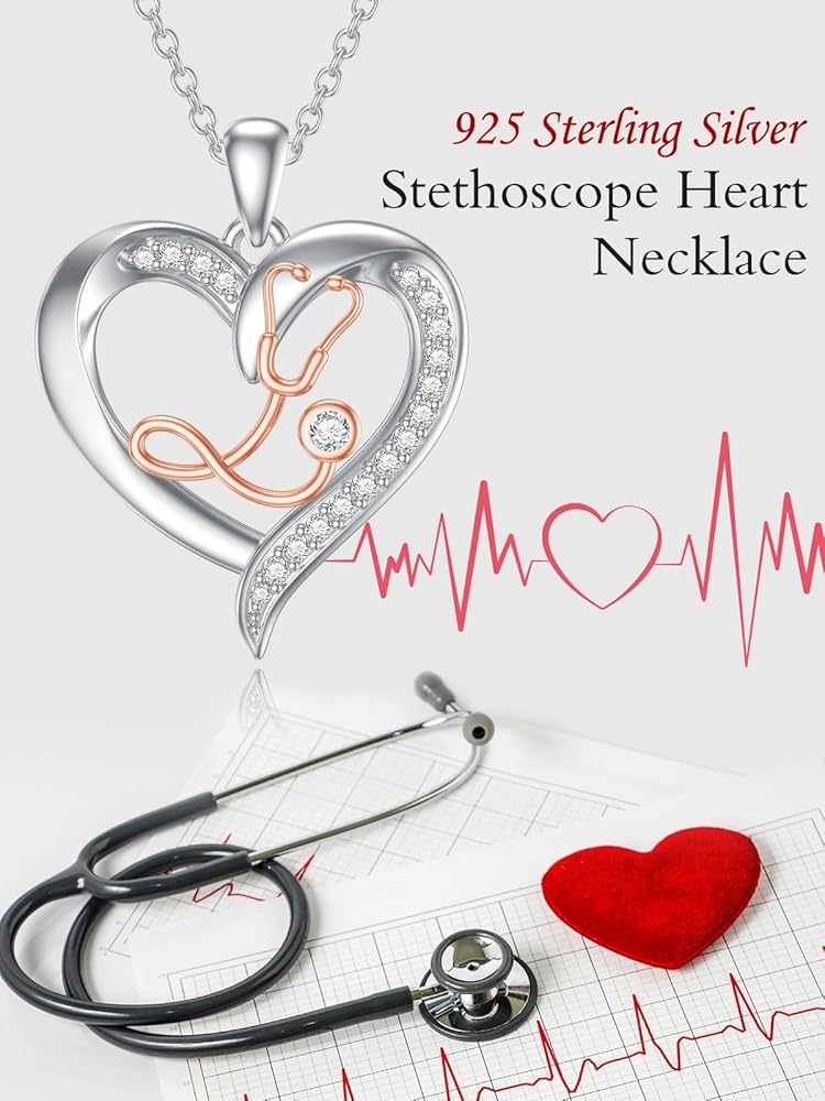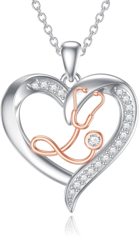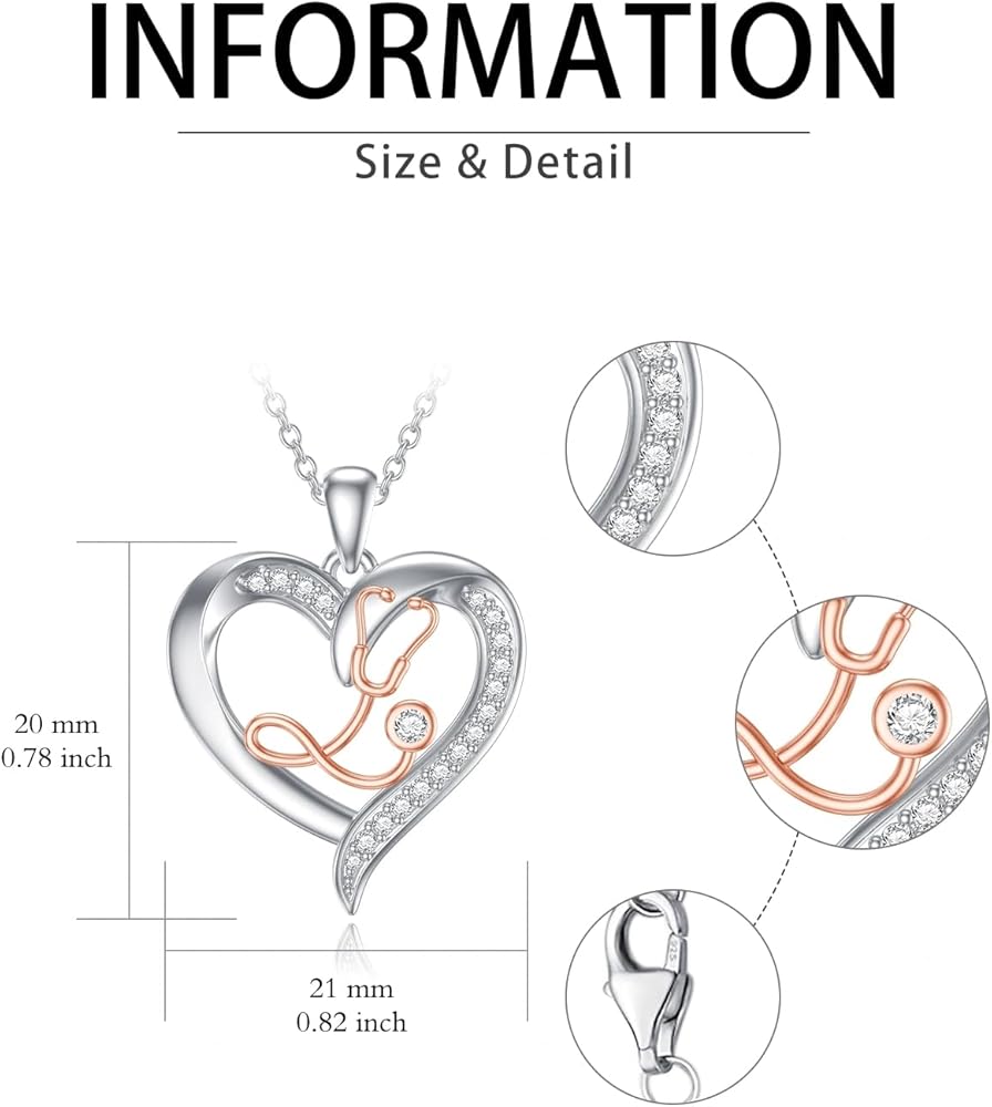 قلادة سماعة الطبيب S925 من الفضة الاسترليني ممرضة الطبيب سماعة الطبيب قلادة على شكل قلب متقاطع مجوهرات التمريض الطب موضوع الهدايا للطبيب ممرضة التخرج الطبي طالب الطب البيطري RN