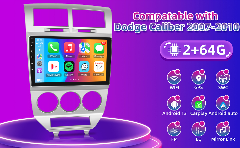 🎁【راديو شاشة لمس عالية الدقة مقاس 10.1 بوصة】تم تصميم راديو السيارة Android 13 خصيصًا لسيارة Dodge Caliber 2007 2008 2009 2010، التوصيل والتشغيل. فهو يوفر شاشة واسعة لتجربة بصرية أكثر ثراء. يمكن تعديل التصميم بشكل مثالي ويأتي مع نظام Android 13 وذاكرة الوصول العشوائي (RAM) سعة 2 جيجابايت + ذاكرة الوصول العشوائي (ROM) سعة 64 جيجابايت لتزويد المستخدمين بأفضل تجربة.