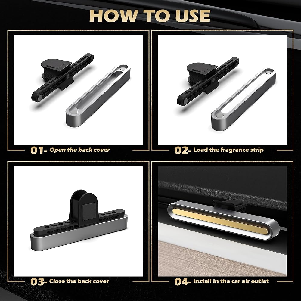 Easy installation and secure attachment: Designed with a back clip, this car diffuser air freshener is incredibly easy to install. It conveniently attaches to your car vents, ensuring a secure fit without falling off during your journeys. Enjoy the convenience of a hassle-free installation process and the peace of mind knowing it stays in place.