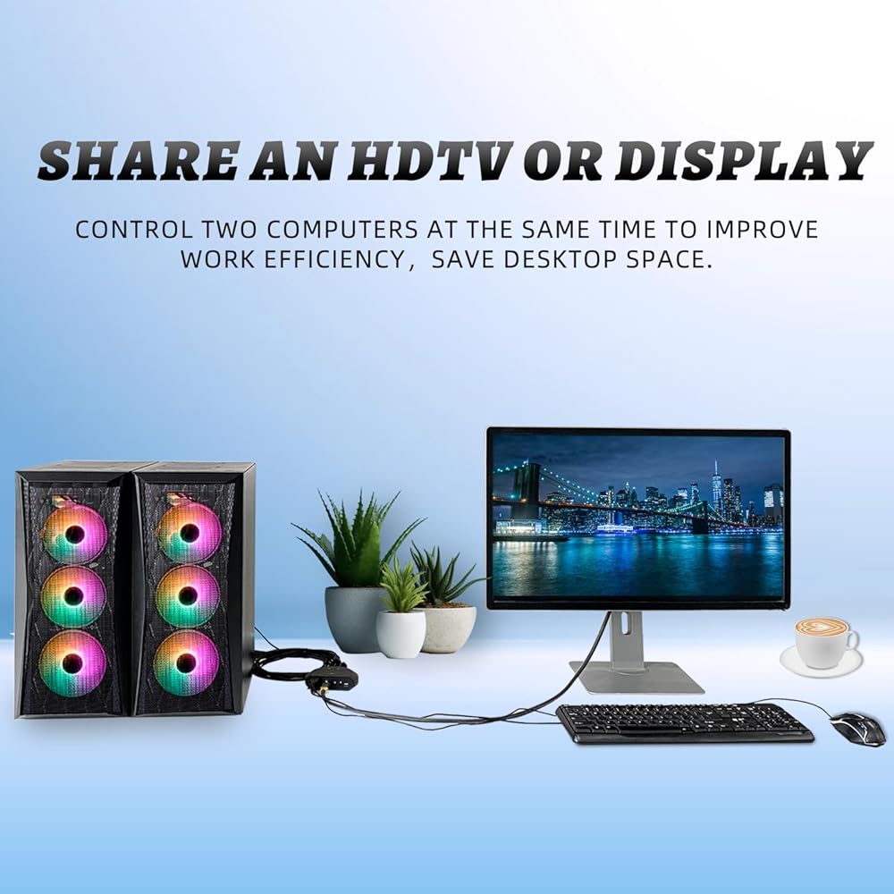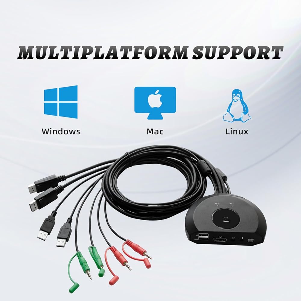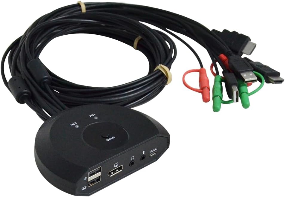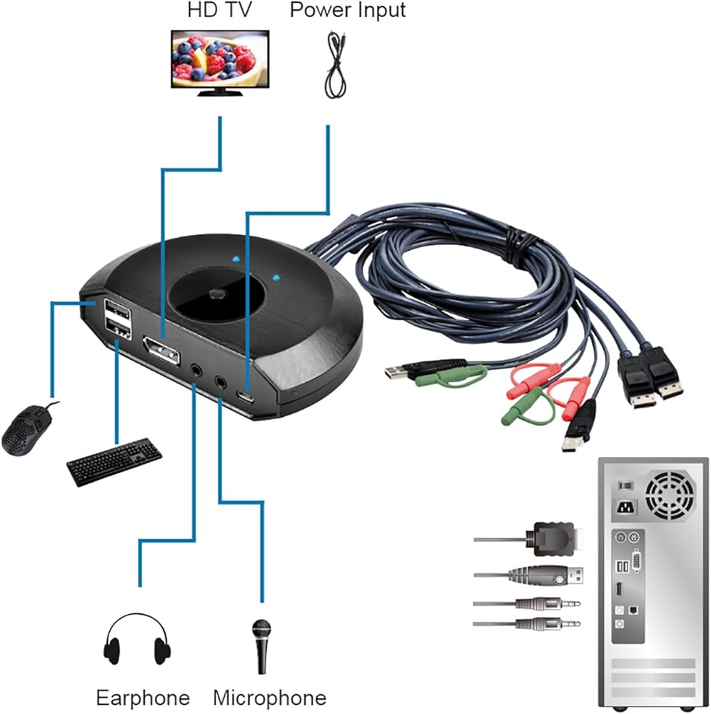 Share an HDTV or display, USB keyboard & mouse between 2 USB/DP computers and devices.