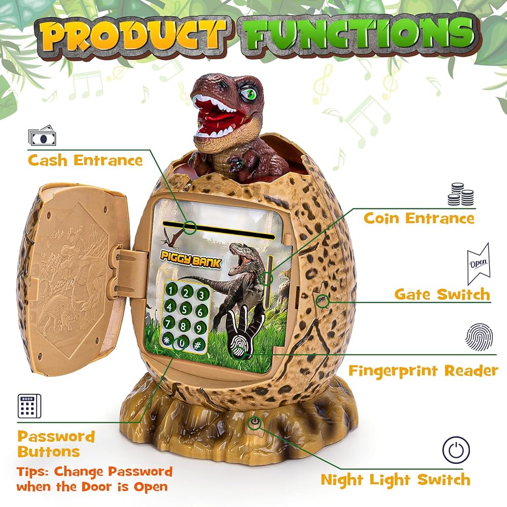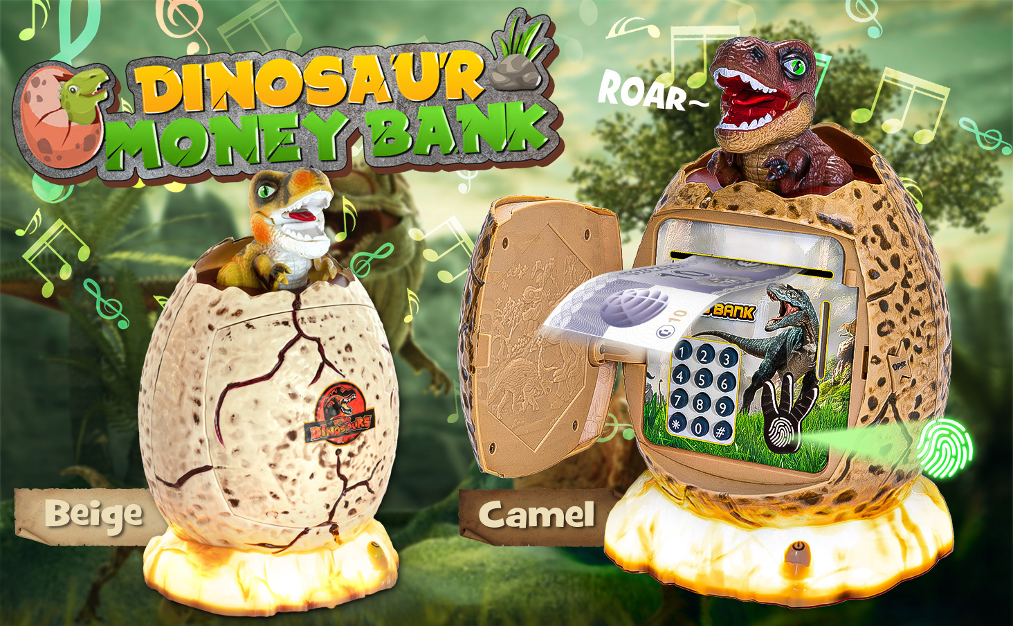 • بنوك DINO EGG PIGGY المدمجة - إن بنك الخنزير الخاص بنا للأطفال عبارة عن حزمة ممتعة من التوفير والموسيقى والضوء. على شكل بيضة ديناصور آسرة، توفر خزنة الحصالة التفاعلية هذه عالمًا من الإثارة والتعليم والصفاء وقت النوم. من منا لم يتخيل وجود لعبة مثل هذه عندما كان طفلا؟ طريقة ممتازة لتعلم الحفظ والأرقام والذاكرة أثناء اللعب!