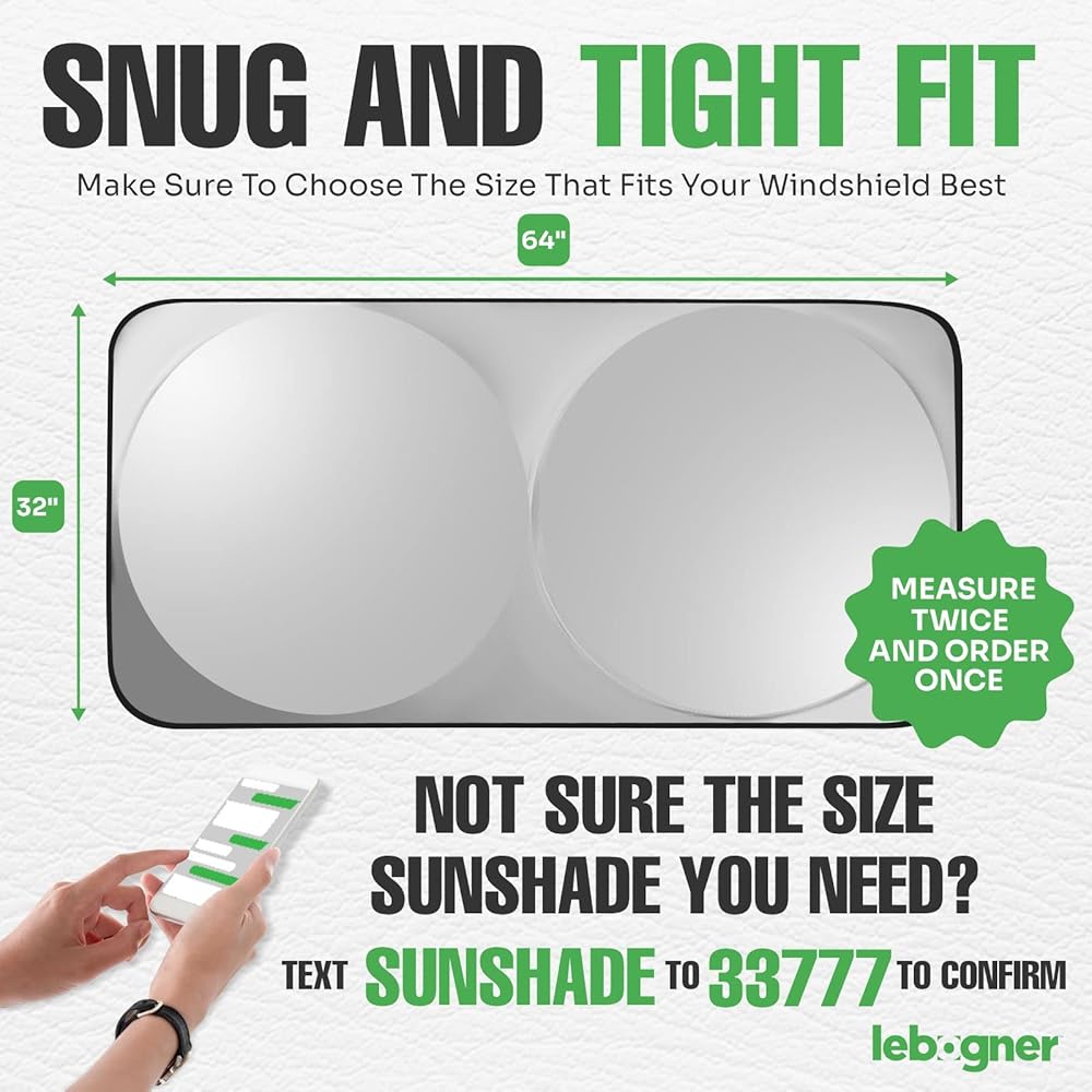 ✓ حجم رائع - يبلغ مقاس المظلة الشمسية للزجاج الأمامي للسيارة 64 بوصة × 32 بوصة وسوف تناسب معظم الزجاج الأمامي للسيارات. نظرًا لخصائصه القابلة للتعديل، فإنه ليس من الضروري أن يكون القياس الدقيق للزجاج الأمامي الخاص بك ومع ذلك سيظل ملائمًا بشكل مريح.