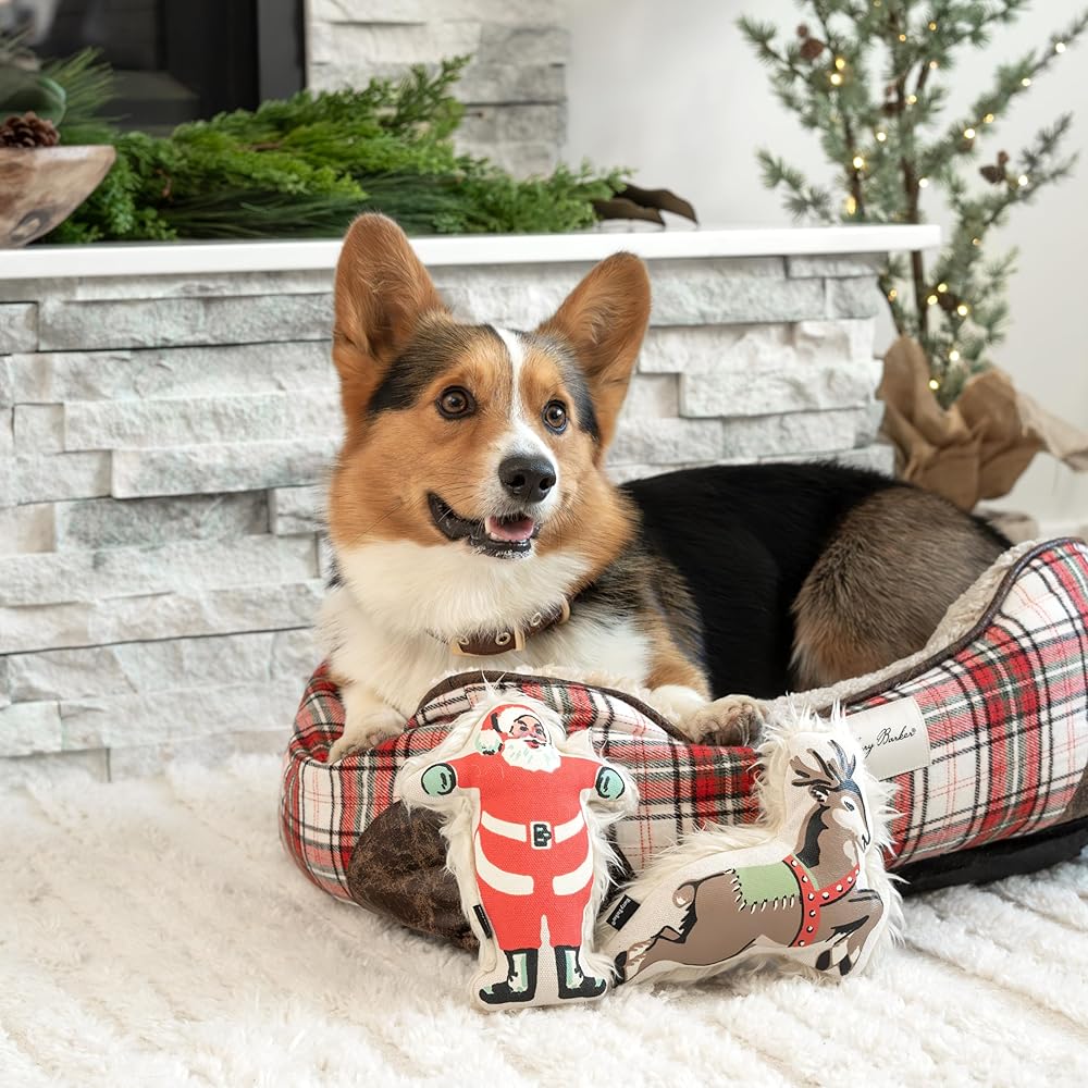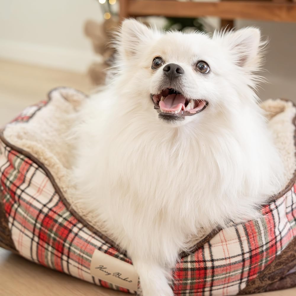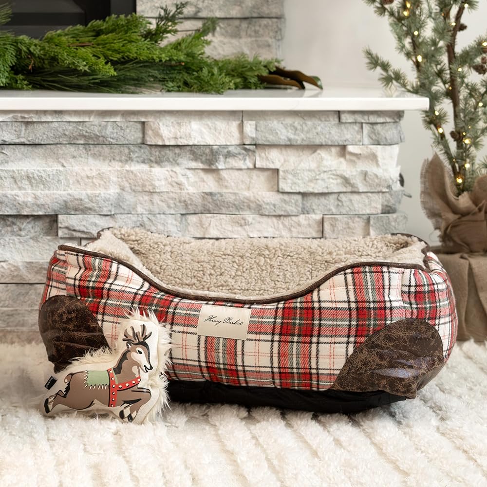The Cabin Plaid Cuddler Dog Bed by Harry Barker offers an absolutely irresistible nook for sleepy pups to snuggle. The durable red plaid exterior will add a touch of holiday cheer to any home. And it's complemented by charming brown Vegan leather patches on the corners and super-soft berber fleece interior lining.