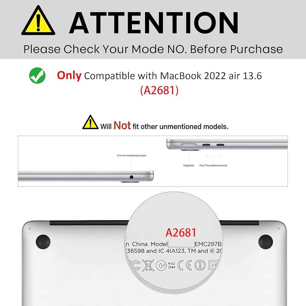 【MacBook Air 13.6 inch Case】Only compatible with 2022 New Macbook Air 13.6 inch M2 Chip Model Number: A2681, Please check the Macbook model "AXXXX" on the back before purchasing. Not compatible with other Macbook model