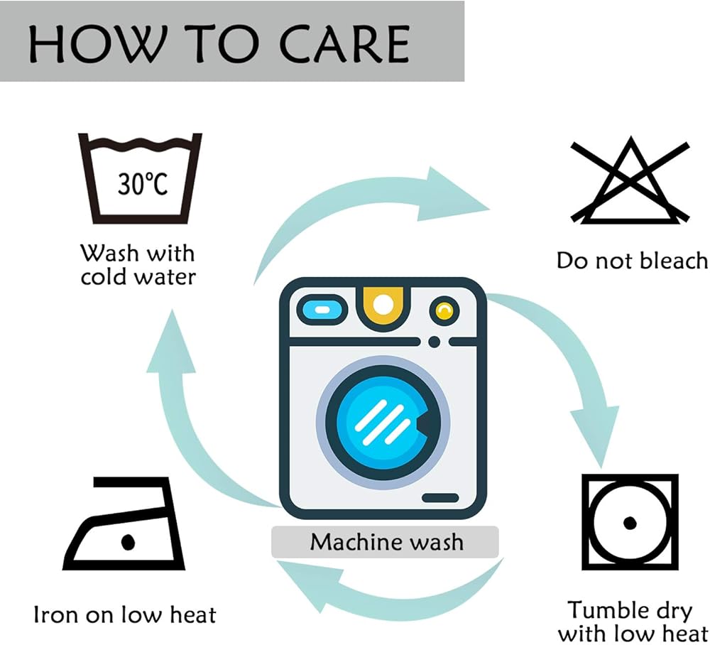 تعليمات العناية: يمكن غسل ستائرنا المعتمة المتينة في الغسالة بدورة خفيفة وماء بارد. لا تستعمل مبيض. مكواة دافئة أو مكواة بخار على الجانب الخلفي، وتجفف بالمجفف في درجات حرارة منخفضة.