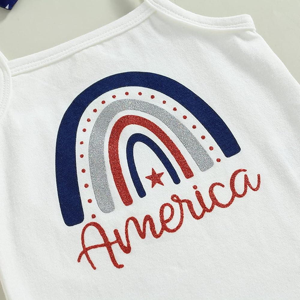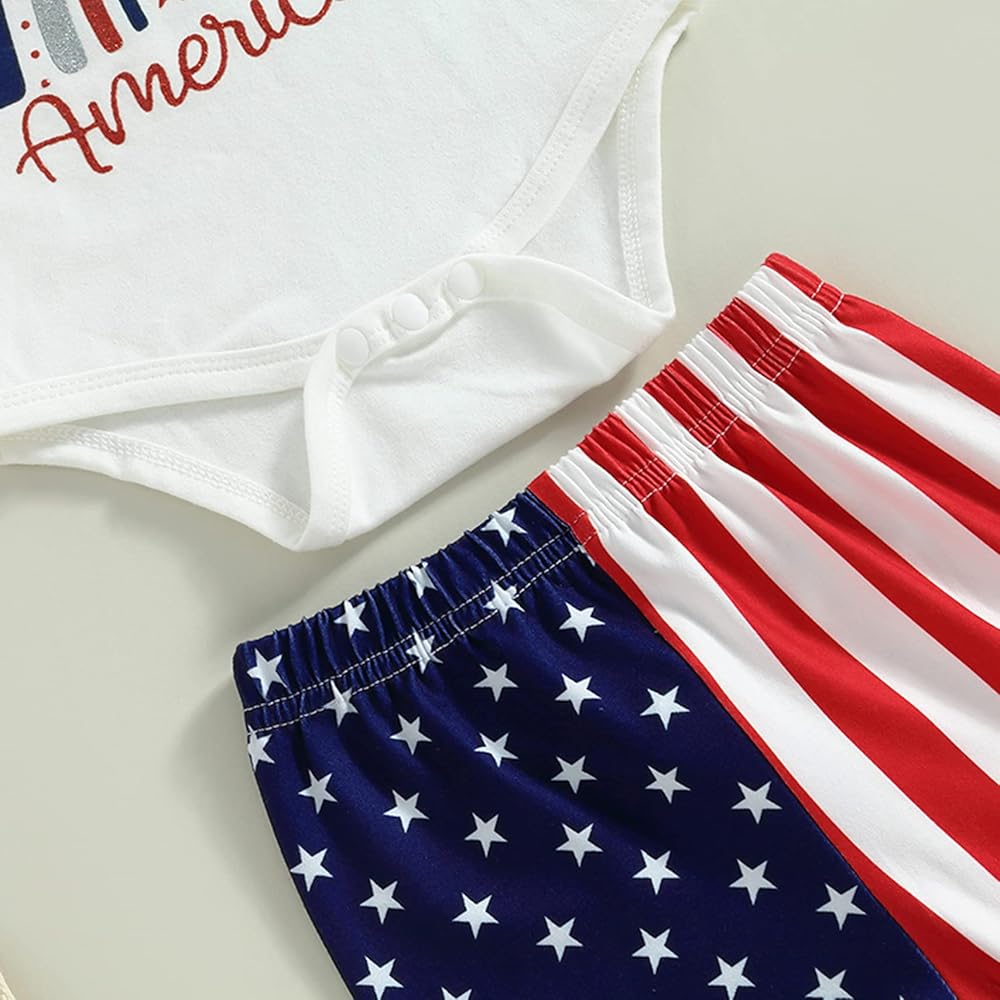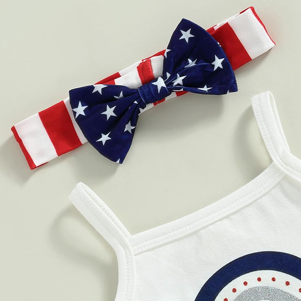 Item: Newborn Baby Girl 4th of July Outfits Sleeveless Romper Bodysuit+American Flag Bell Bottom Pants+Headband
