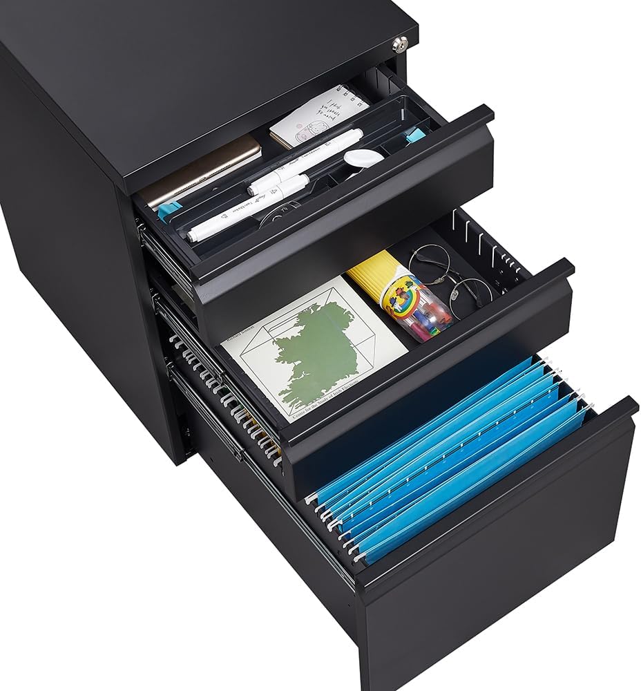 LOCKABLE: Central locking system keeps all three drawers securely closed at once. Keeps confidential work away from prying eyes.