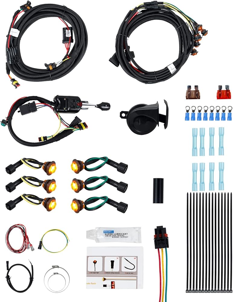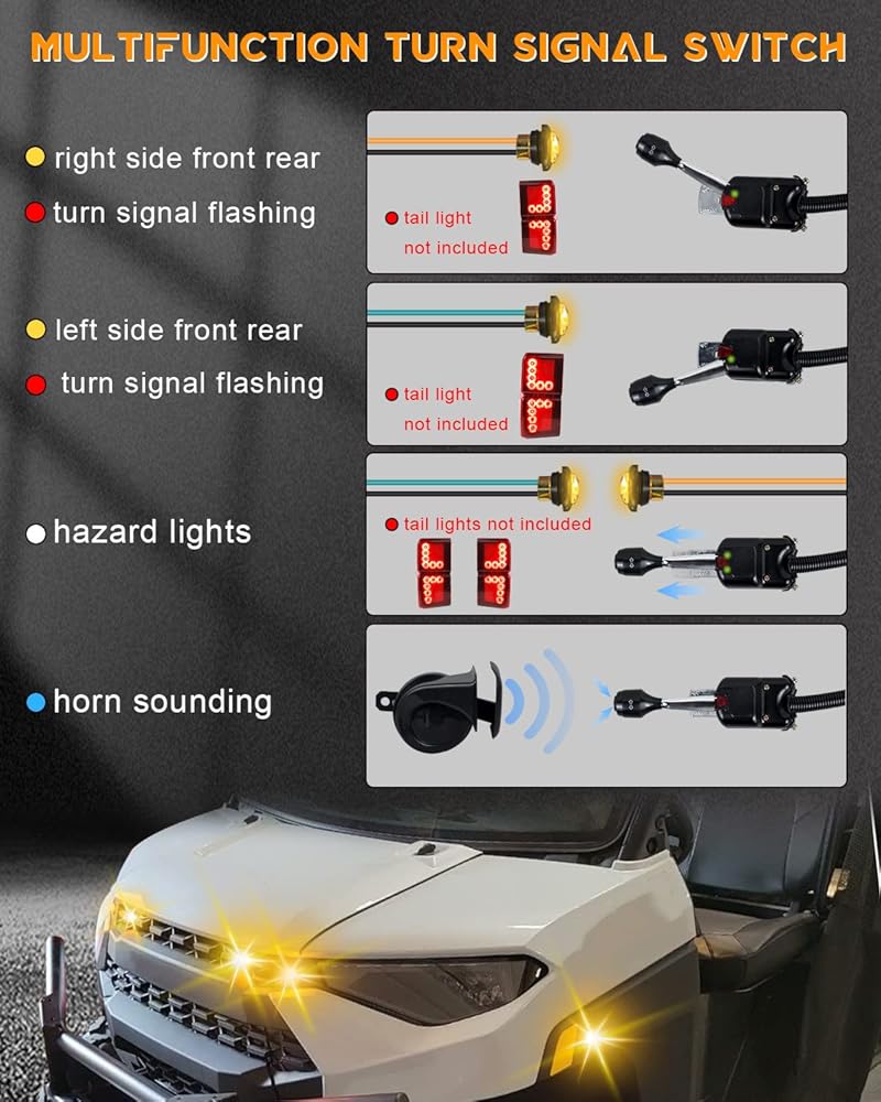 【تحويل UTV الخاص بك إلى مركبة صالحة للطرق】تم تصميم مجموعاتنا القانونية للشوارع لأجهزة UTV لمساعدتك على جعل سيارتك على الطرق الوعرة متوافقة مع اللوائح وصالحة للطرق. يتم تضمين تسخير سلك إشارة الانعطاف الأمامي الخلفي ومفتاح إشارة الانعطاف وإشارات الانعطاف الأمامية والقرن وأضواء المخاطر وما إلى ذلك لتلبية متطلبات السلامة والمتطلبات التنظيمية. نصائح: تختلف قوانين الشارع القانونية لـ UTV حسب الموقع. يرجى التحقق من القوانين المحلية الخاصة بك قبل القيادة على الطريق.