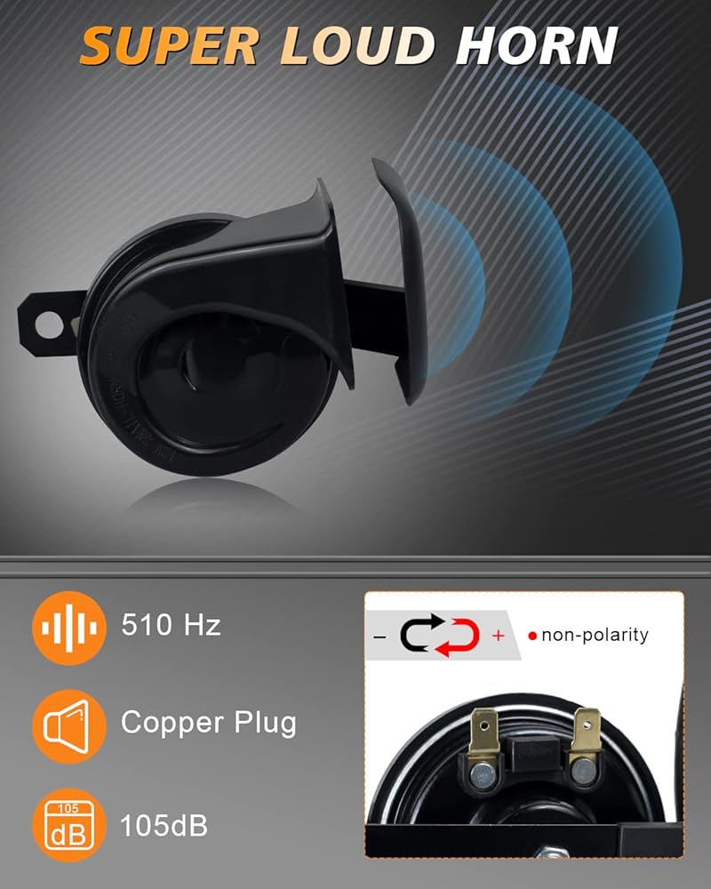 【مفتاح إشارة الانعطاف عالي الجودة وقرن 105D】يتميز مفتاح إشارة الانعطاف UTV بمفاتيح لكل من إشارات الانعطاف اليسرى واليمنى، بالإضافة إلى ضوء خطر لمزيد من الأمان. يأتي مع مشبك، ما عليك سوى ربط المشبك بعمود التوجيه دون حفر أو قطع. يعتبر البوق 510 هرتز 100-110 ديسيبل مرتفعًا بما يكفي لجذب انتباه السائق الآخر.