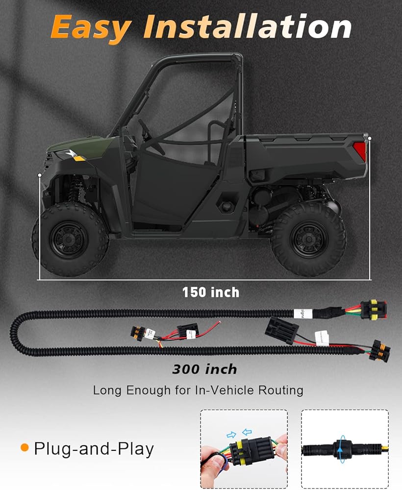 【الإعداد】متوافق مع مجموعة متنوعة من موديلات Polaris، مثل Ranger 1000 EPS وRZR 900 وRZR XP 1000 EPS وRZR XP Turbo EPS ونماذج UTV جنبًا إلى جنب. للحصول على معلومات التوافق التفصيلية، يرجى التحقق من garagy أو الاتصال بعملائنا للحصول على المساعدة بشأن طراز Polaris المحدد الخاص بك.