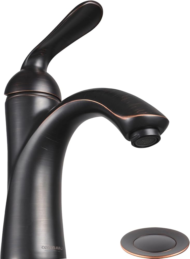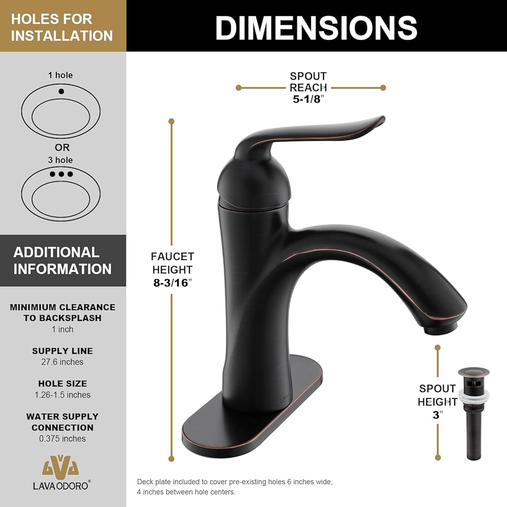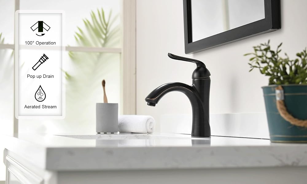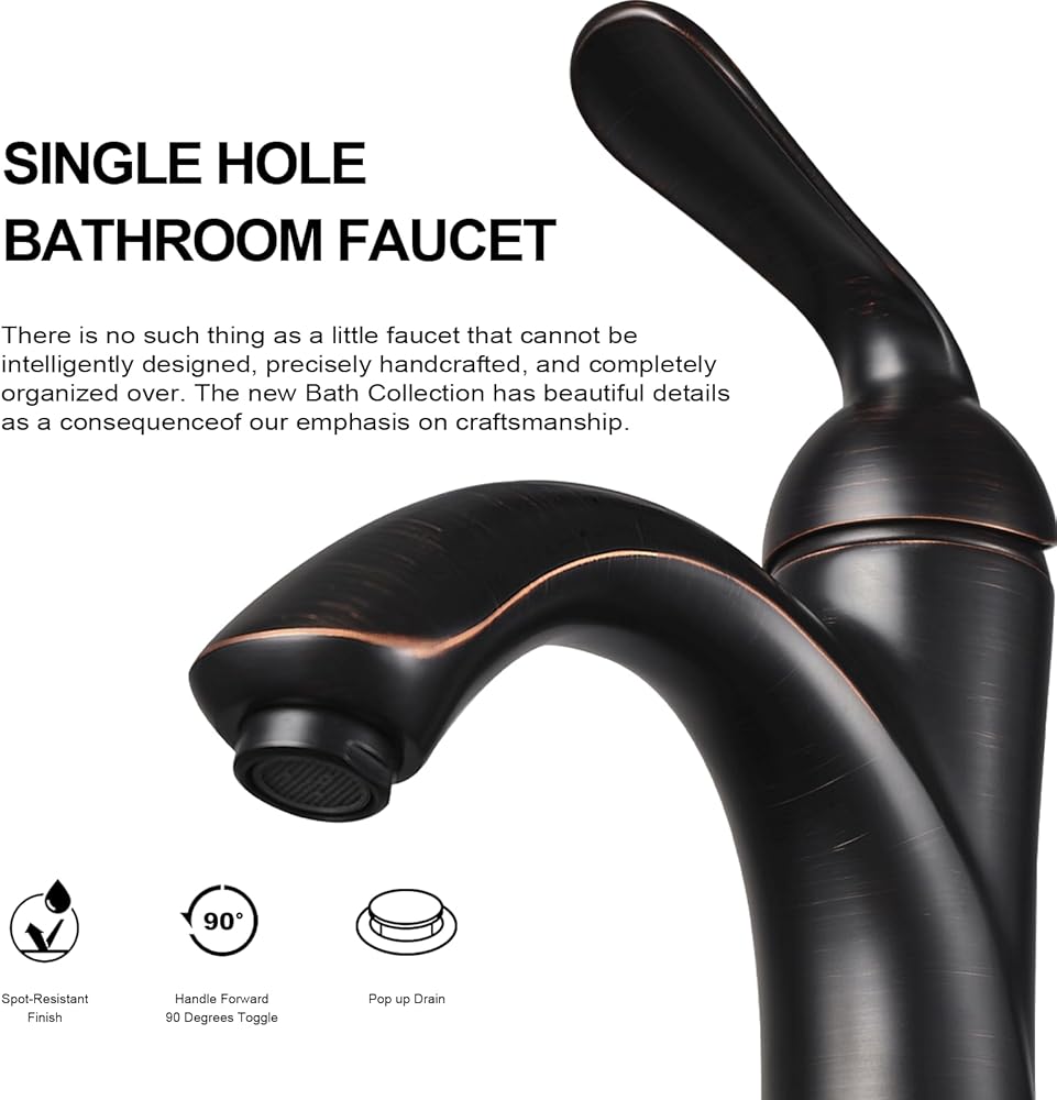 💎 لمسة نهائية خالية من البقع - صنبور الحمام ذو الفتحة الواحدة مصنوع من البرونز المطلي بزيت PVD ومطلي بطبقات متعددة لمقاومة بقع الماء وبصمات الأصابع، مما يتطلب تنظيفًا أقل. يتم تضمين مجموعة تصريف منبثقة ذات لمسة نهائية متطابقة ولوحة سطح مقاس 6 بوصات في الصندوق.