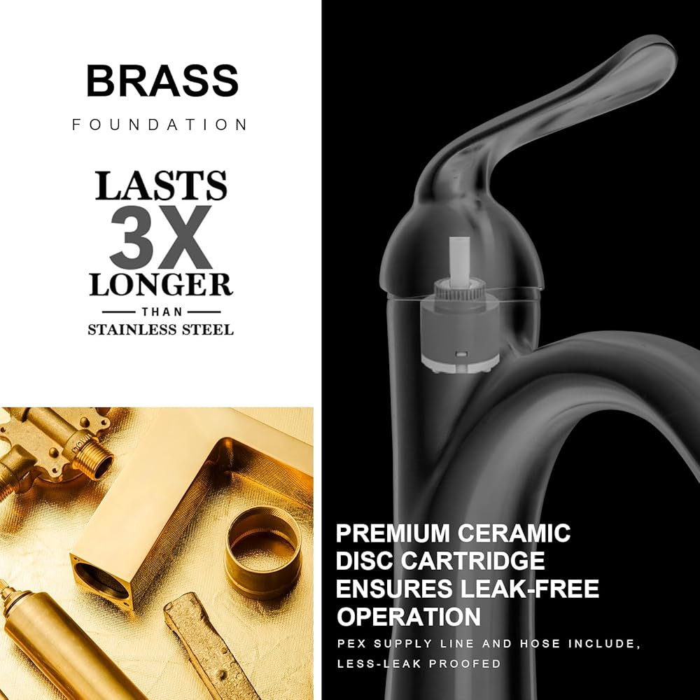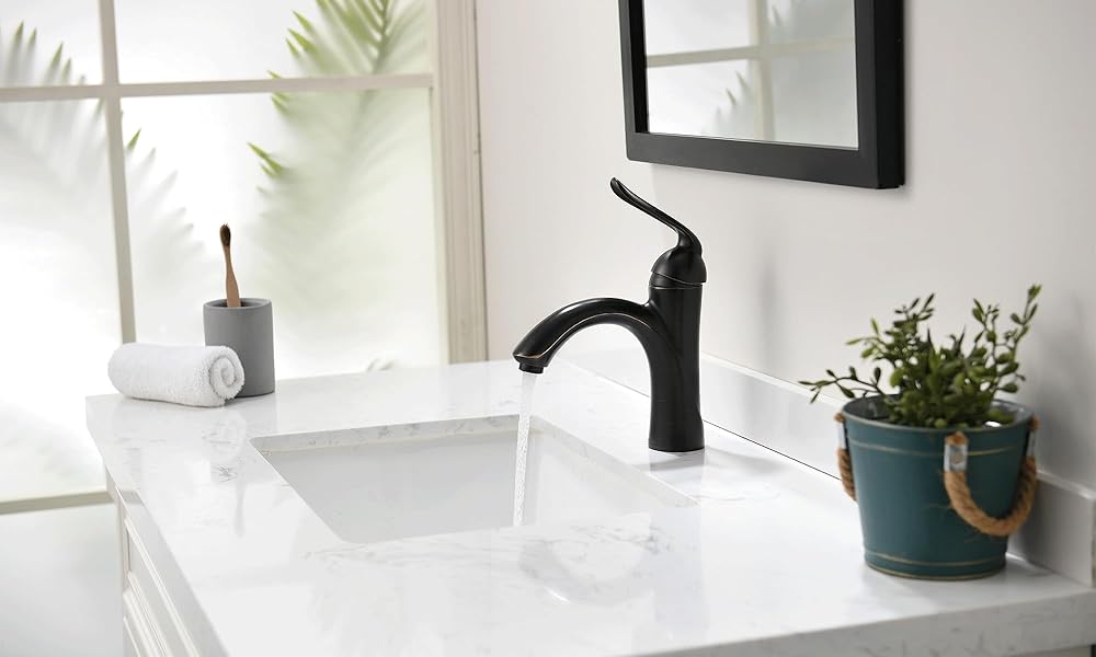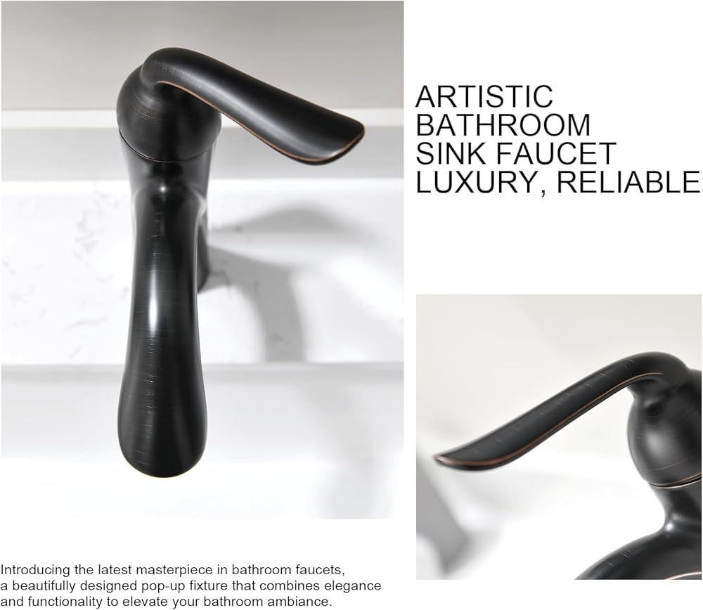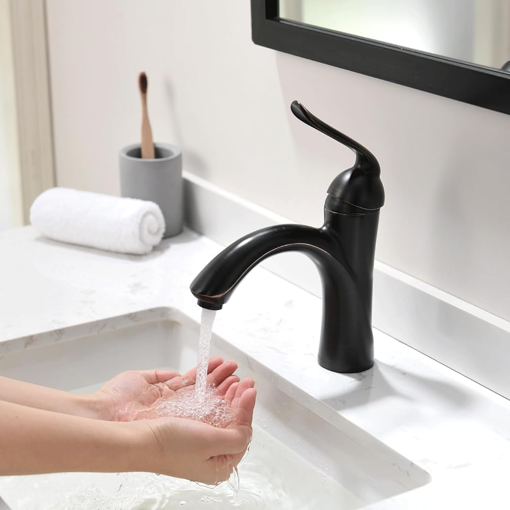 💎 لمسة نهائية خالية من البقع - صنبور الحمام ذو الفتحة الواحدة مصنوع من البرونز المطلي بزيت PVD ومطلي بطبقات متعددة لمقاومة بقع الماء وبصمات الأصابع، مما يتطلب تنظيفًا أقل. يتم تضمين مجموعة تصريف منبثقة ذات لمسة نهائية متطابقة ولوحة سطح مقاس 6 بوصات في الصندوق.