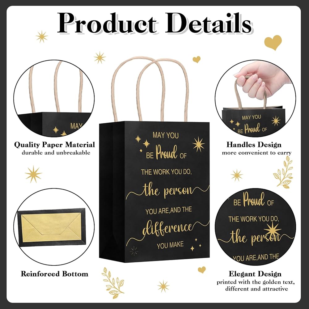 أبعاد مناسبة للاستخدام متعدد الاستخدامات: تم تصميم حقائب هدايا الشكر ذات المقابض بحجم حوالي 8 × 6 × 3 بوصات، مما يوفر مساحة واسعة لهداياك ومستلزمات التجميل والزهور والشموع والمزيد؛ أبعادها المثالية تجعلها متعددة الاستخدامات للعديد من التطبيقات، بدءًا من التسوق وحتى الأحداث أو الحفلات، مما يعكس التطبيق العملي والراحة