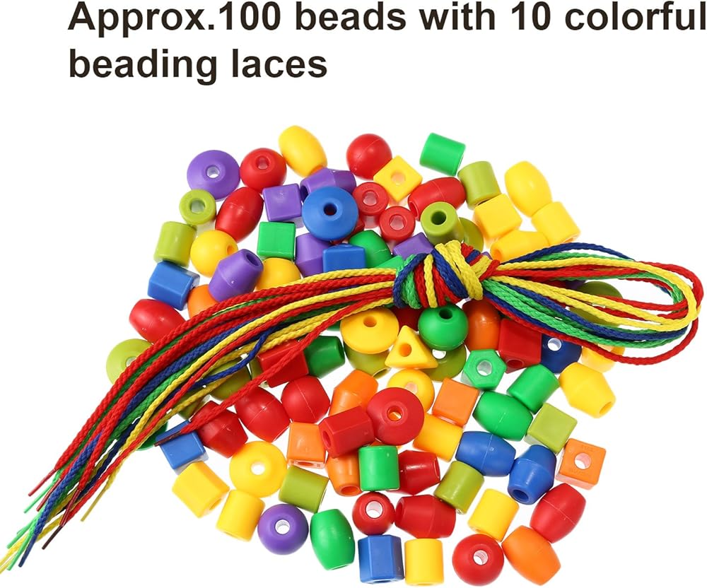 • Characteristic: approx. 100 brightly colored plastic beads with various shapes and colors, include 10 rainbow laces, kids will love the bright rainbow colors as their focus and attention turns into curiosity and discovery