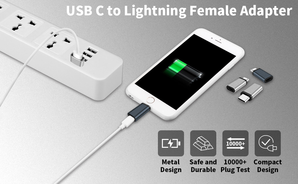 • محول USB C إلى Lightning الخاص بنا مصنوع من سبائك الألومنيوم عالية الجودة والمقاومة للخدش، ويتميز بمقاومة رائعة للتآكل وتبديد الحرارة. يمكن توصيل موصل Lightning to USB هذا وفصله أكثر من 20000 مرة.