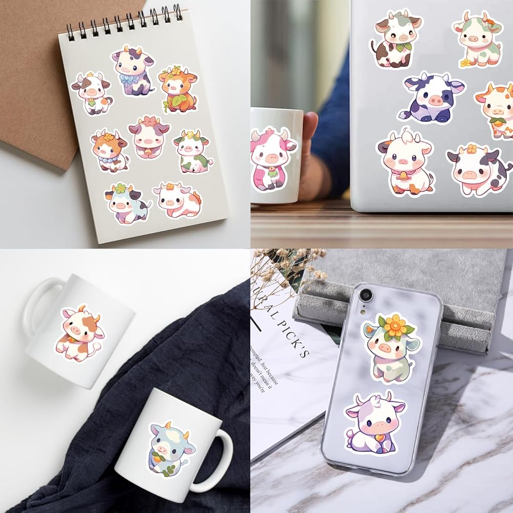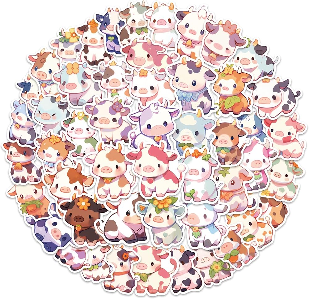 50 قطعة من ملصقات البقرة للأطفال المراهقين والأولاد والبنات - ملصق بقرة لطيف من الفينيل المقاوم للماء لزجاجة المياه، والكمبيوتر المحمول، ودفتر القصاصات، ولوح التزلج، والسيارة، والأمتعة، والخوذة