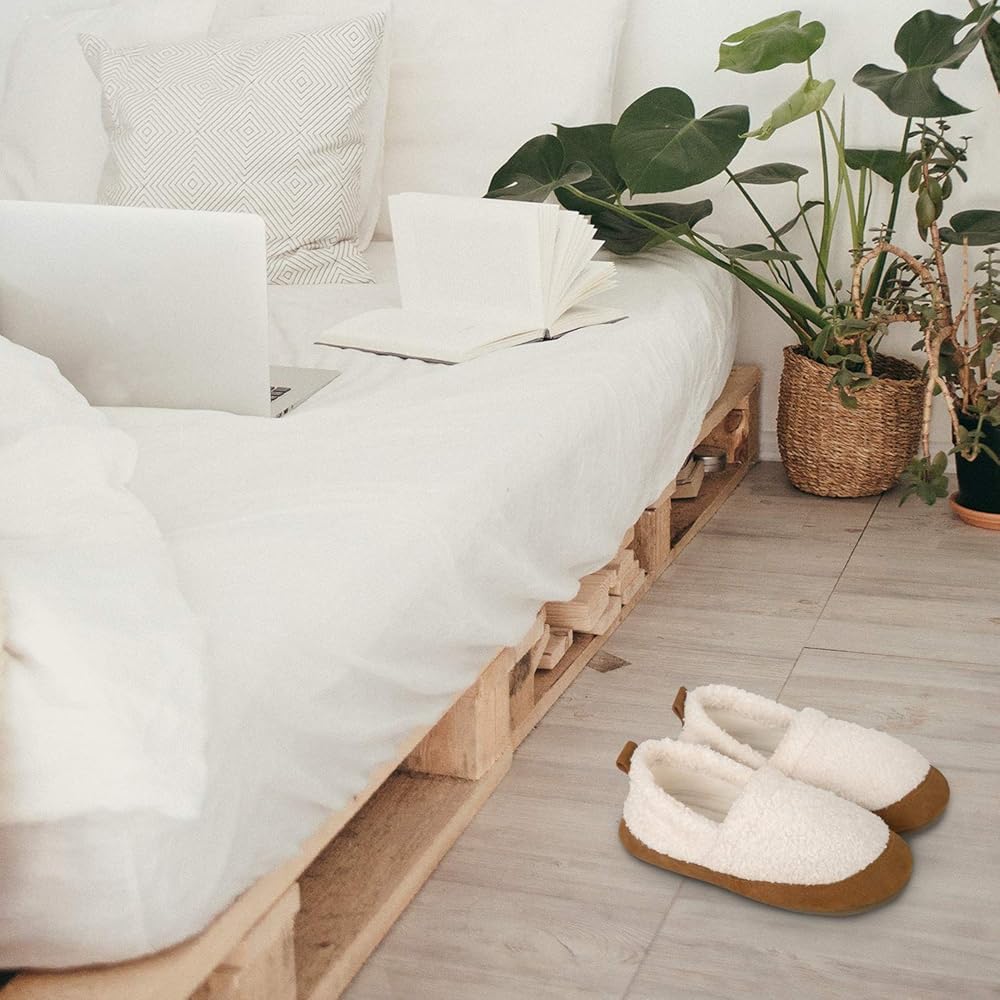 تصميم دقيق - مبطن بالكامل بالصوف الدقيق المريح الذي يمتص الرطوبة بسرعة بعيدًا عن بشرتك. نعل مطاطي متين ينتقل من غرفة النوم إلى الخارج، مما يسمح بالارتداء في الهواء الطلق أثناء الرحلات إلى صندوق البريد أو المرآب؛ الجزء السفلي مضاد للانزلاق يمسك بالأرضية لمنع الانزلاق على البلاط المبلل.