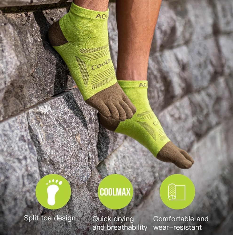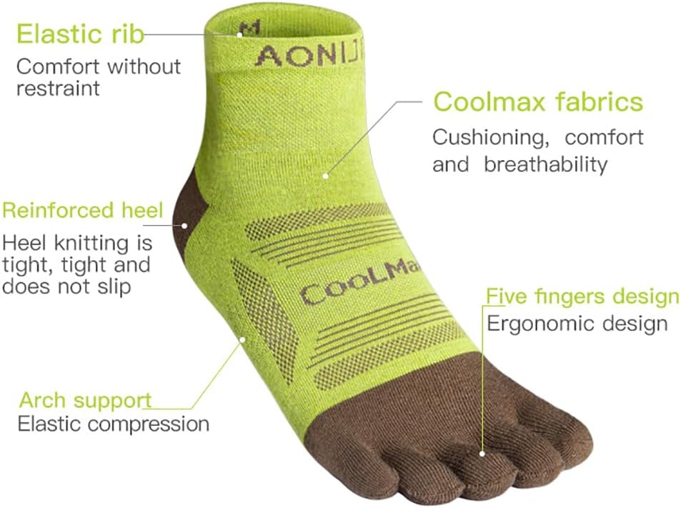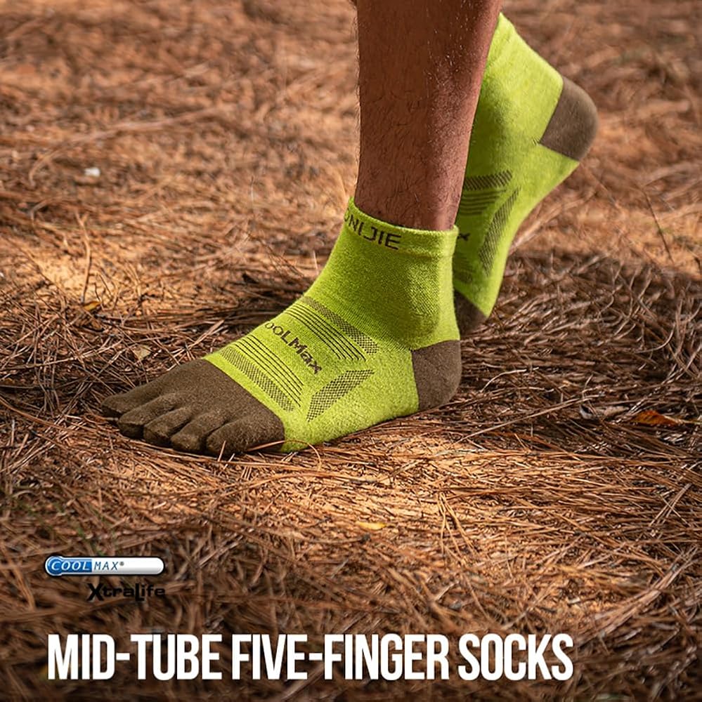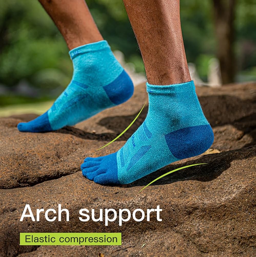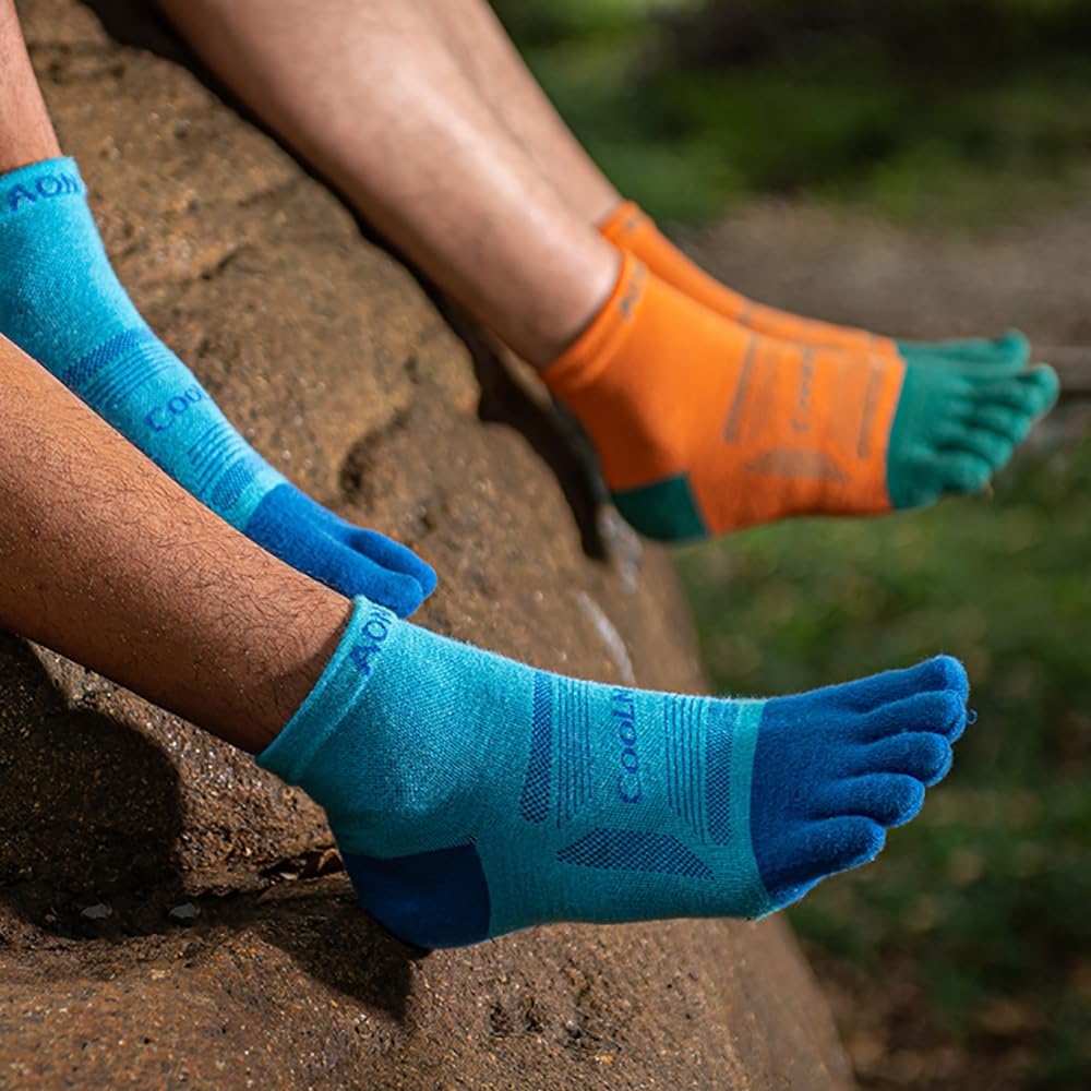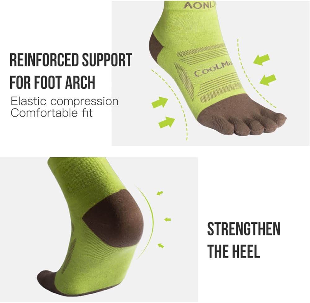【خامة عالية】جوارب أصابع القدم هذه مصنوعة من كولماكس عالي الأداء والنايلون والليكرا، ماصة للرطوبة ومضادة للرائحة، مما يحافظ على قدميك باردة وجافة طوال اليوم.