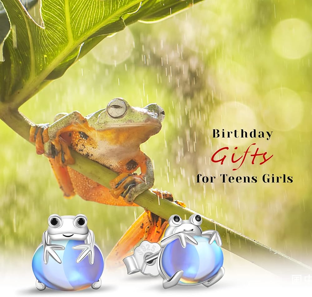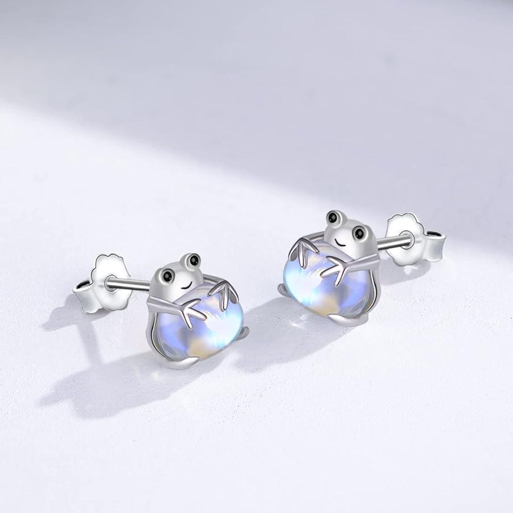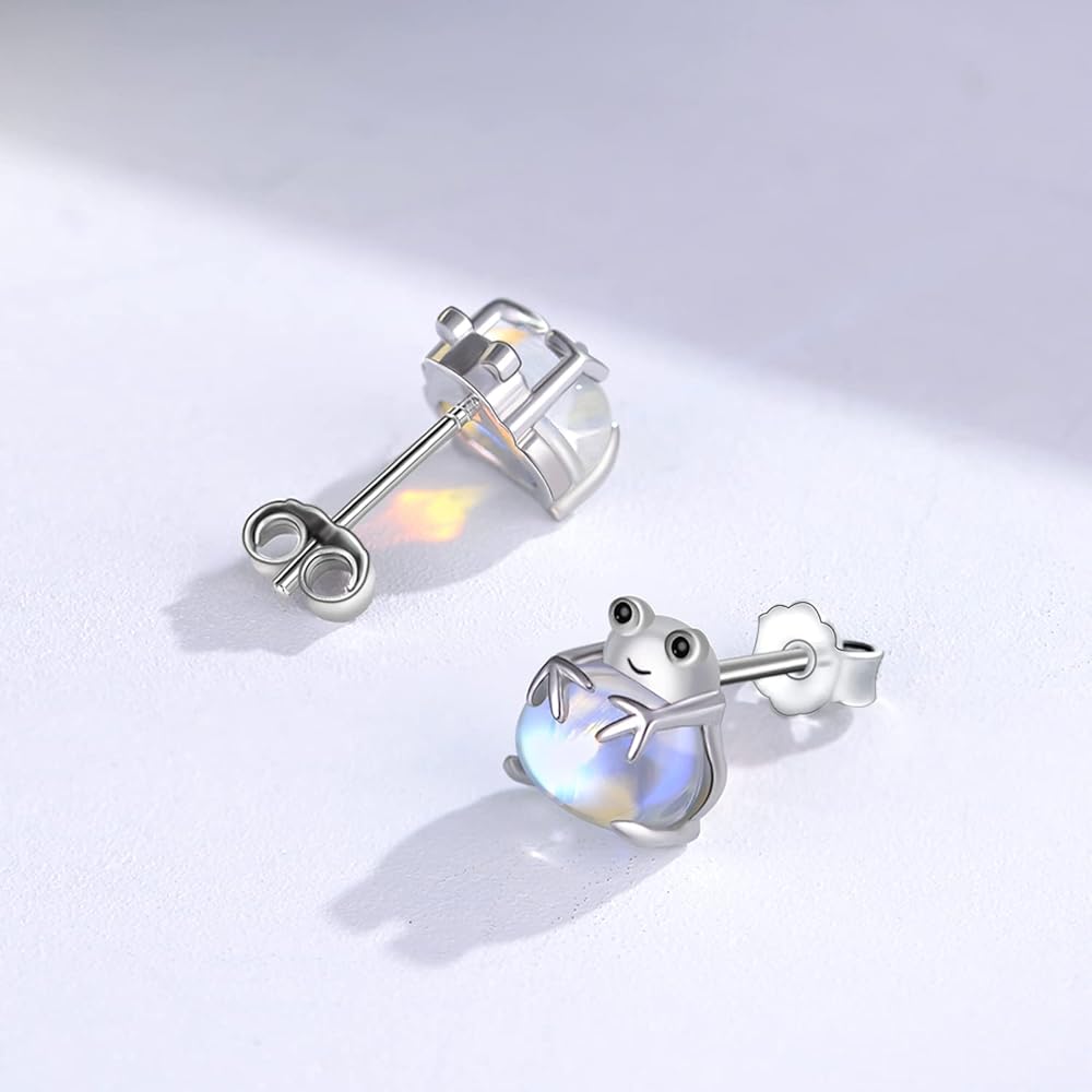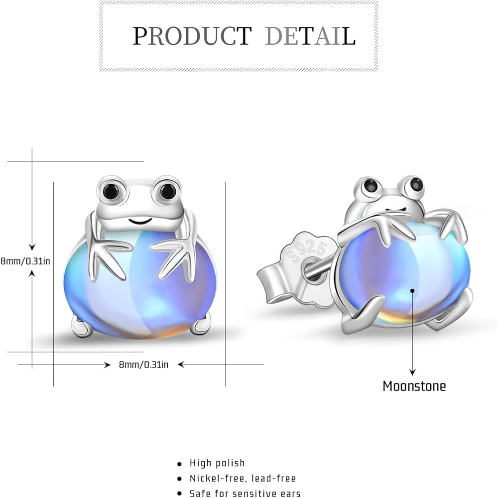 أقراط الضفدع 925 فضة لطيف الضفدع ترصيع أقراط Moonstone أقراط للآذان الحساسة الضفدع مجوهرات هدايا للنساء الفتيات