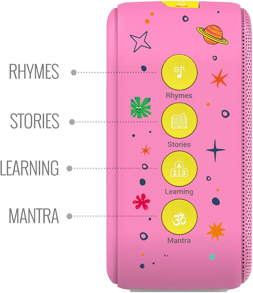 80+ Rhymes: Let your little one sing along to classic English and Hindi rhymes like never before. The Speaker is loaded with favourites such as Humpty Dumpty, Twinkle Twinkle, and many more.