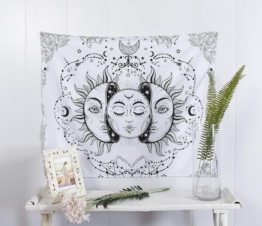 للاستخدام الداخلي كنسيج، معلق على الحائط، مفرش سرير، فن جداري، ديكور للسقف، غطاء سرير، مقسم للغرفة، ستارة، مفرش طاولة، ديكور سكن جامعي أو حماية الخصوصية، غطاء أريكة، أسود وأبيض يجعل منزلك يبدو بسيطًا للغاية ومليئًا أُحجِيَّة. في الهواء الطلق مثل بطانية النزهة، بطانية الشاطئ، منشفة الشاطئ. كما أنها فكرة هدية رائعة للأقارب والأصدقاء الأكبر سناً.